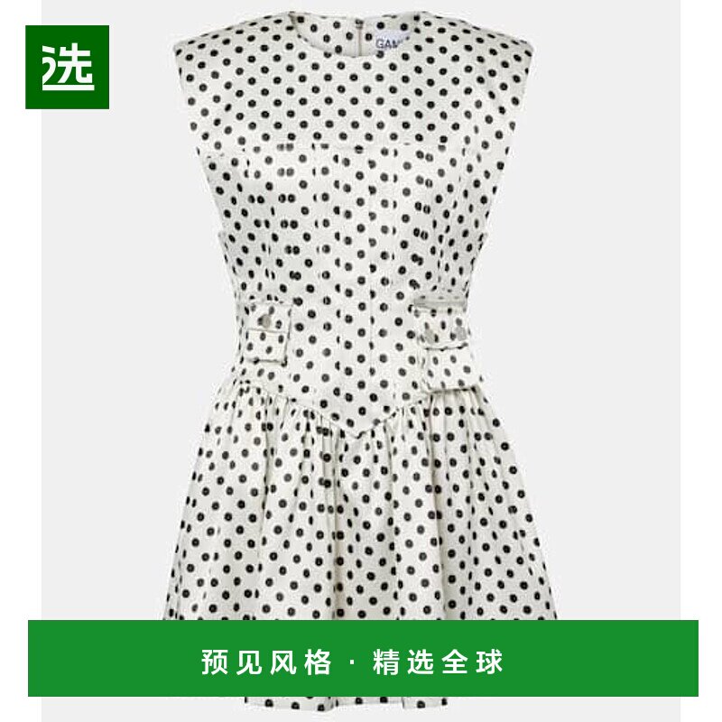 📚 1h可退 香港直邮GANNI 甘尼 女士 波尔卡圆点缎面束腰连衣裙新款