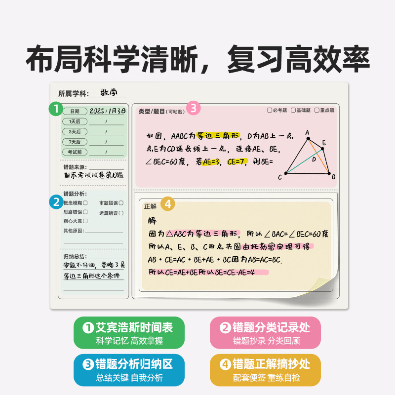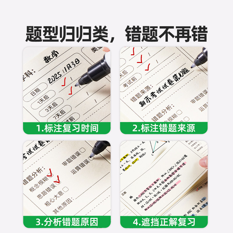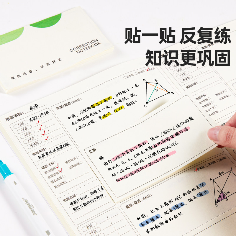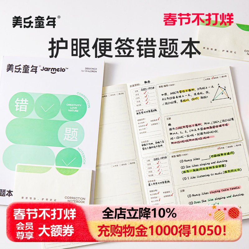📚 美乐童年护眼便签错题本小学生一年级专用摘抄本初中生学习用品加厚数学纠错本五年级语文英语错题活页本