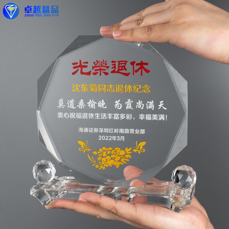 📚 水晶定制定做光荣退休纪念品实用医生送老师教师节聚会留念感谢牌