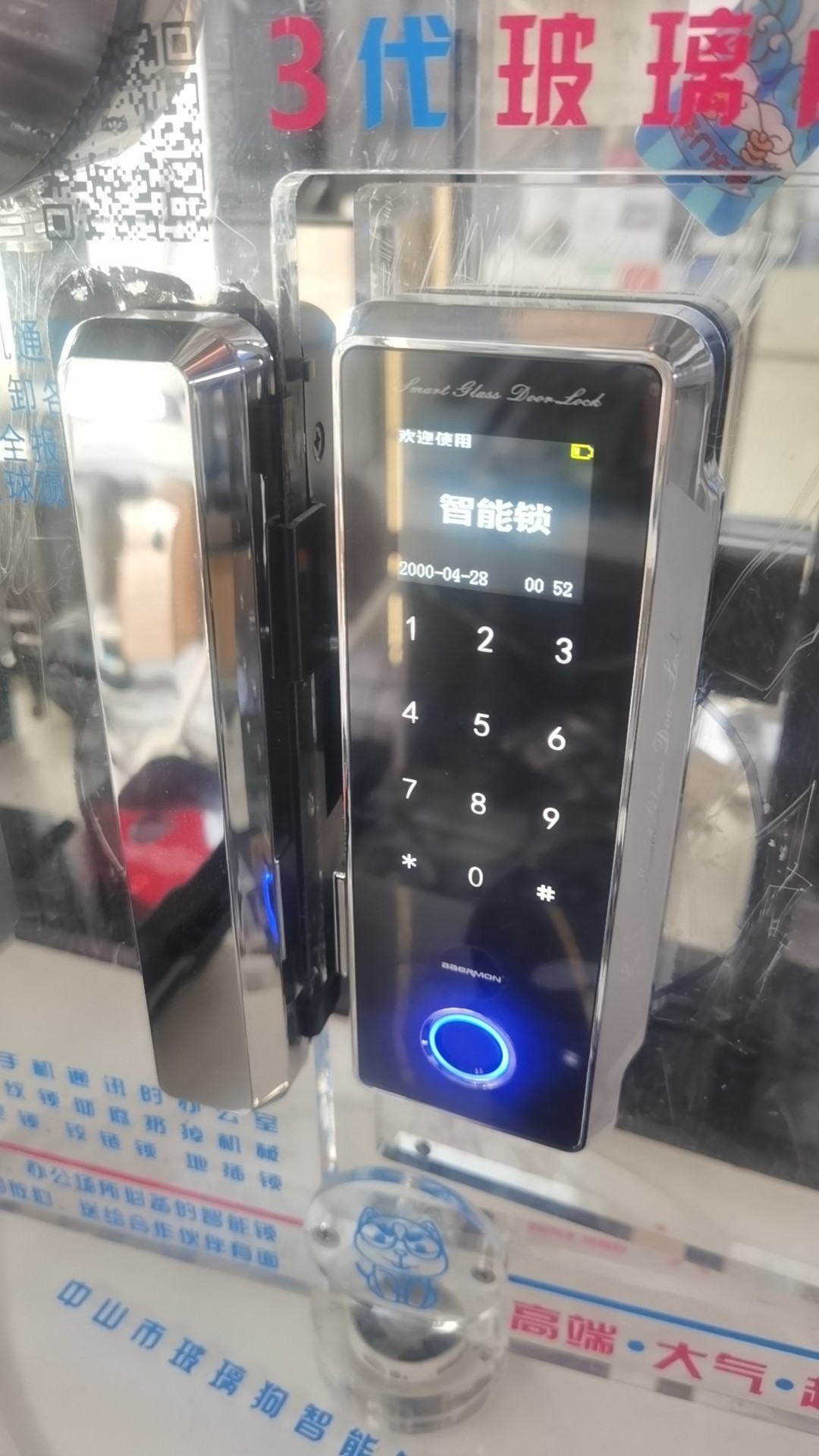 📚 帮尔门玻璃门指纹密码刷卡锁免开孔免布线地弹簧智能门禁锁