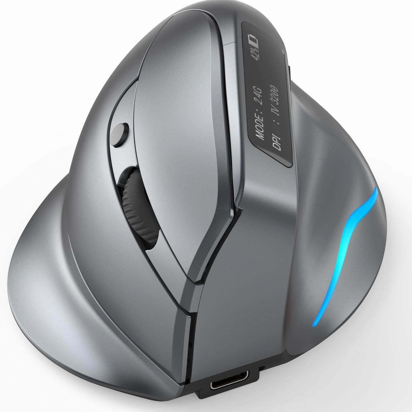 📚 掌握者F-26C立式垂直鼠标无线蓝牙双模人体工程学静音充电带屏显