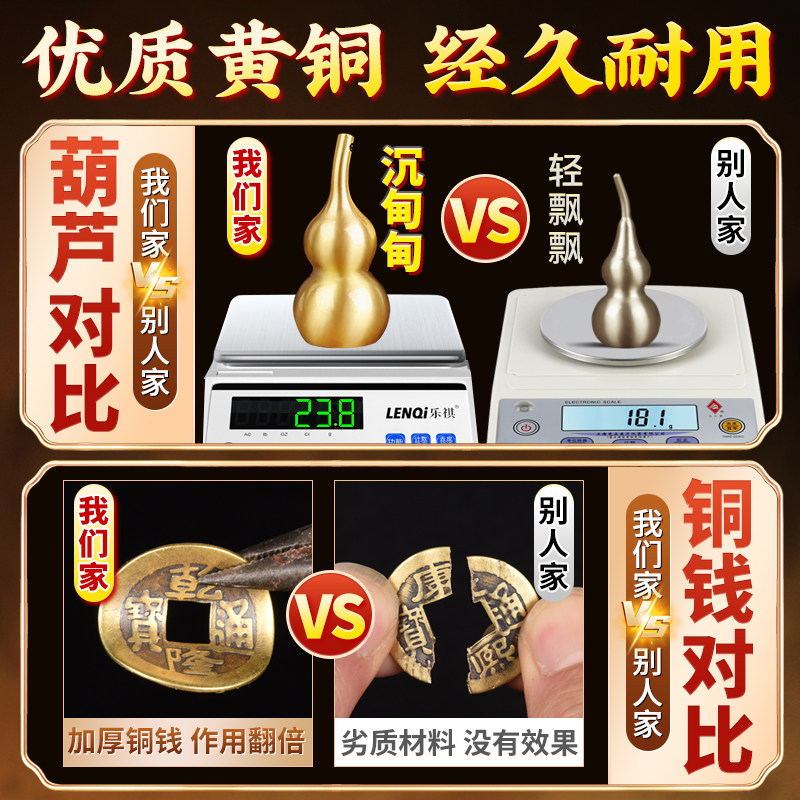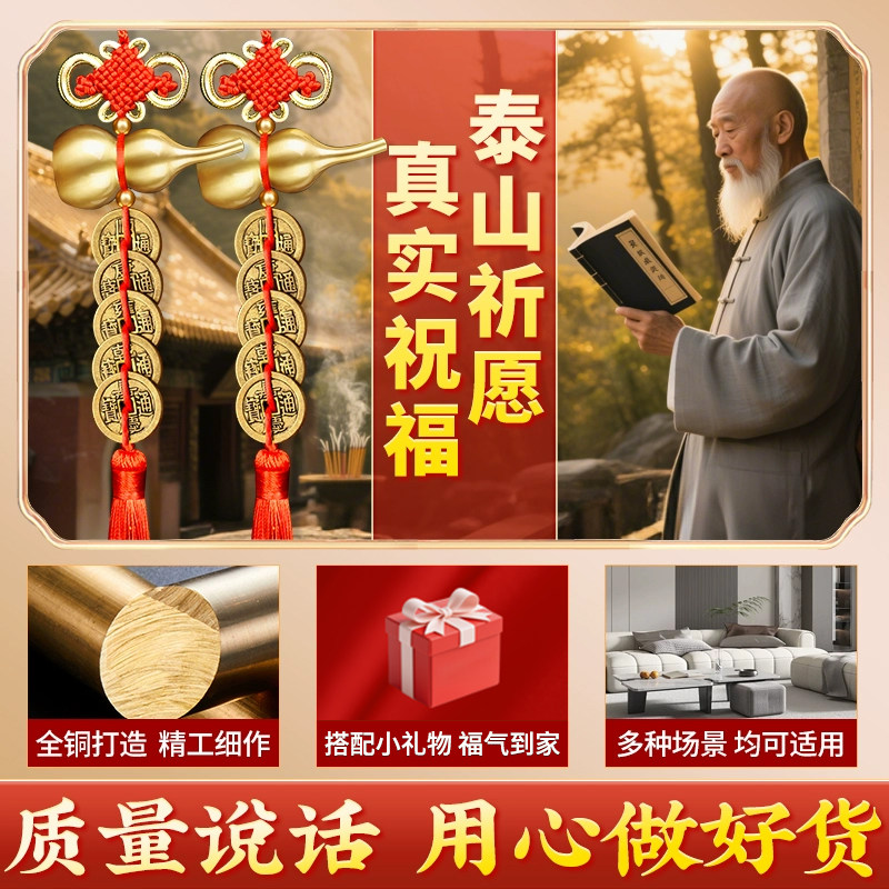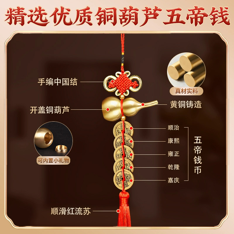 📚 五帝铜钱串挂件吉祥卧室客厅铜葫芦压房梁横梁煞压床横梁压顶解决