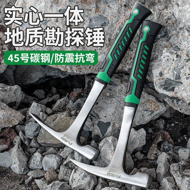 📚 地质勘探锤采石采矿工勘测锤子小型登山探险逃生尖头扁头平镐锤子