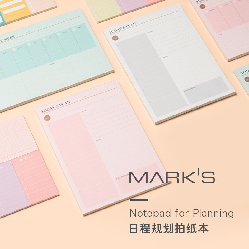 📚 marks MARK'S日程规划用拍纸本50张 可撕记事本 日期自填一日一页周计划台历笔记 办公室书房桌面备忘录