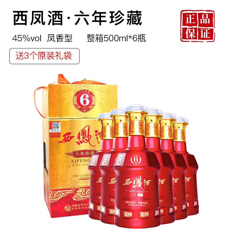 📚 西凤酒45度6/六年陈酿珍藏凤香型婚宴喜酒红瓶礼盒装白酒整箱6瓶