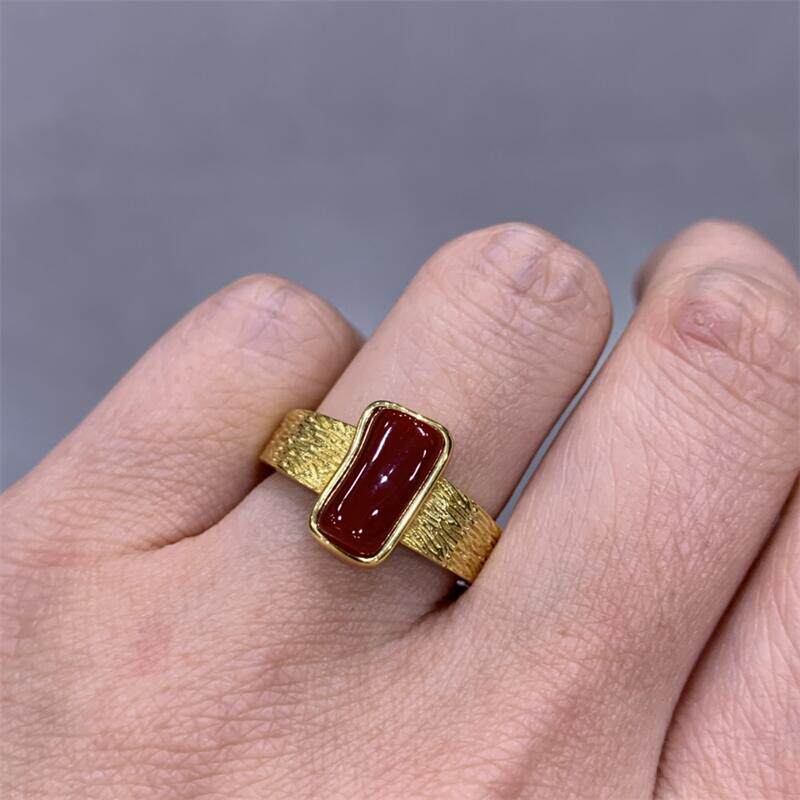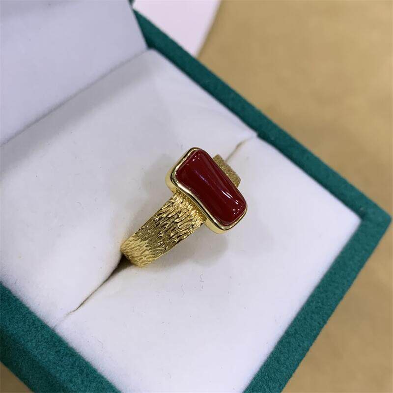 📚 天然日本阿卡珊瑚s925银戒指有机宝石沙丁牛血红深海红科西嘉颂