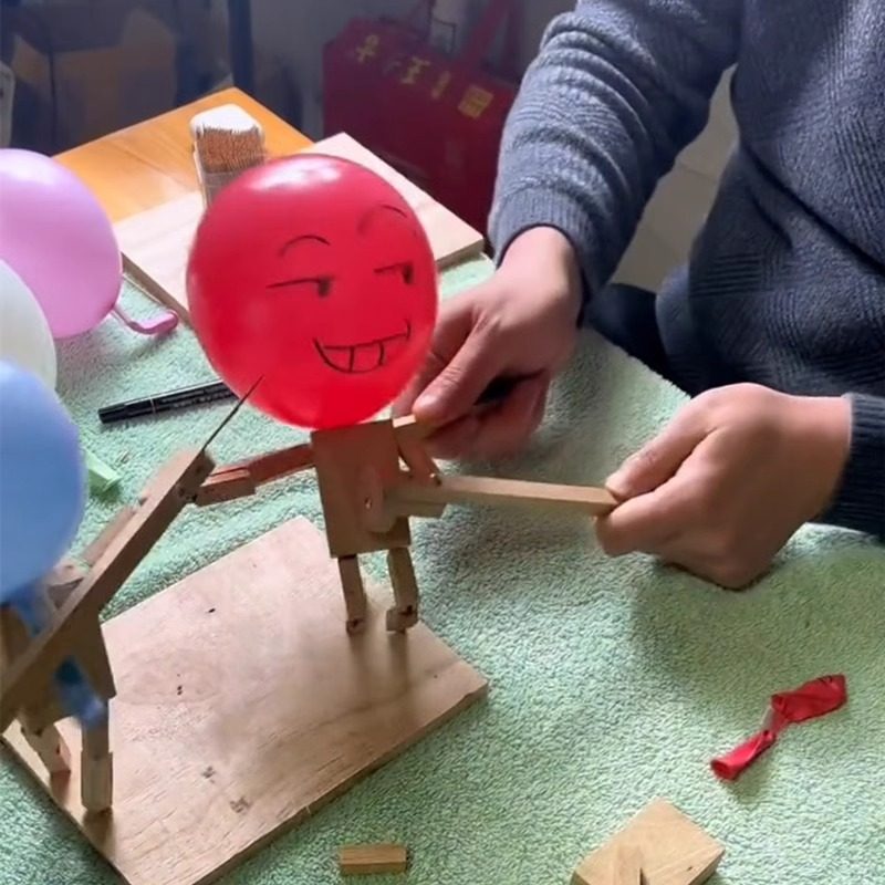 📚 竹节人双人对战玩具爆头爆炸气球对决互动枪战木头格斗人偶木节人