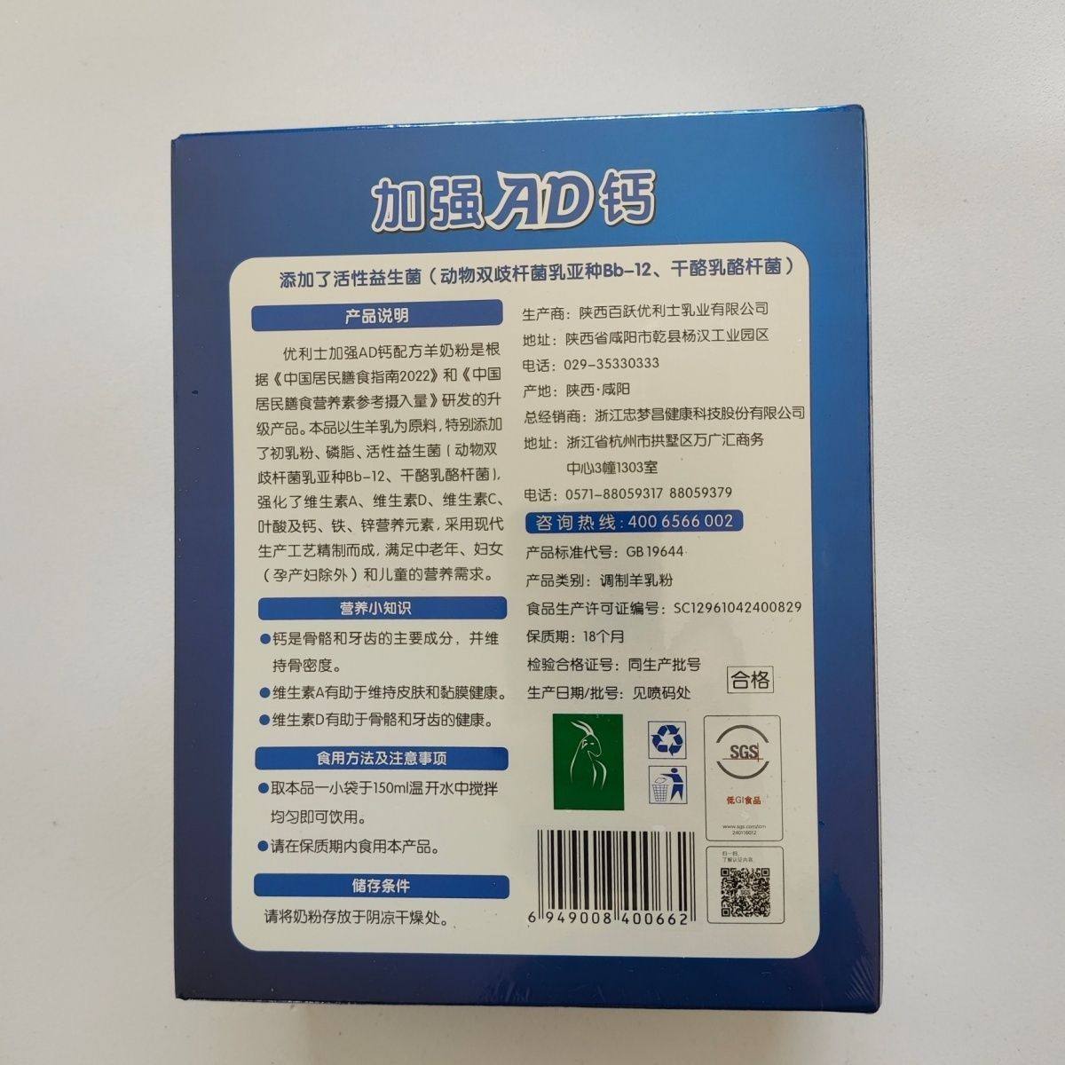 📚 全民优生活加强AD钙配方羊奶粉 优利士加强AD钙配方羊奶粉18袋/盒