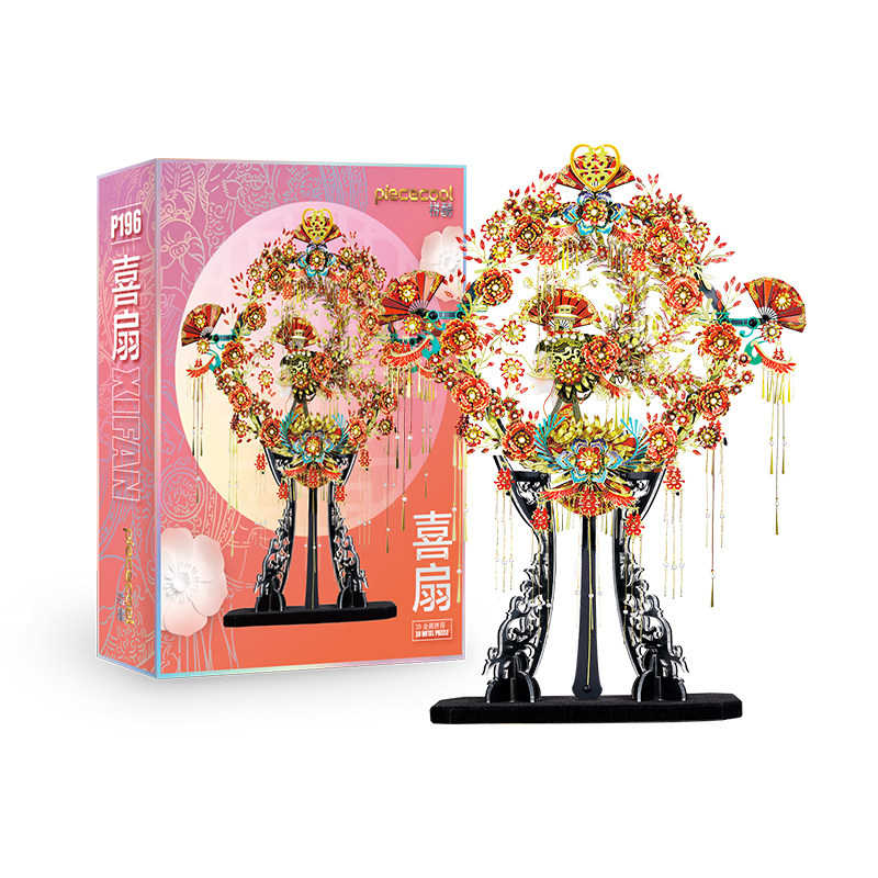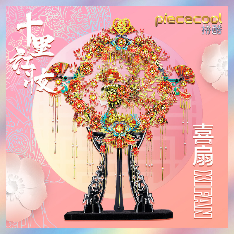 📚 拼酷喜扇十里红妆金属拼图3D立体拼装模型国风团扇新婚礼物送闺蜜