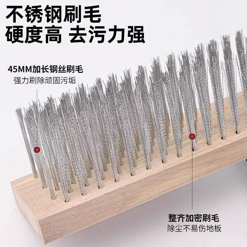📚 不锈钢钢丝刷地板刷子硬毛去青苔铁刷子长柄洗地刷清洁神器去污刷