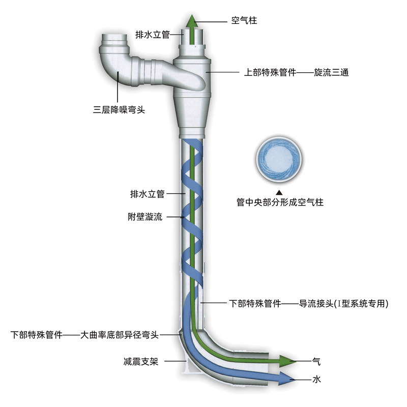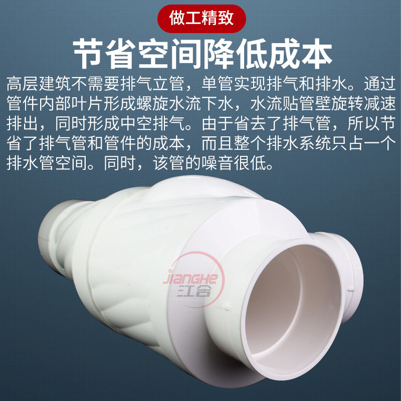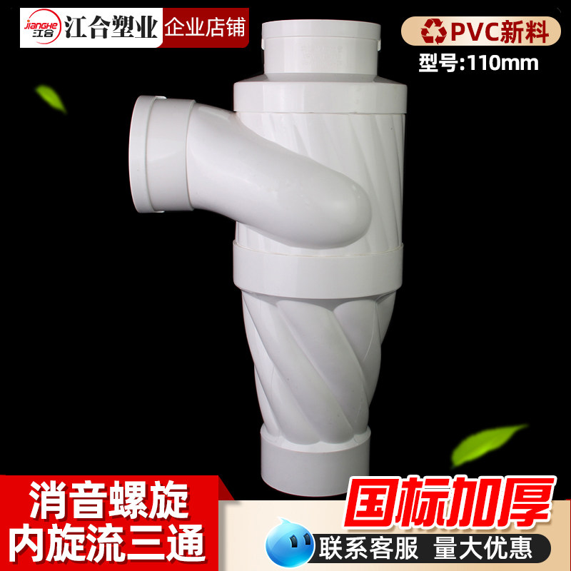 📚 降噪内螺旋特殊单立管110旋流器消音三通接可调预埋件pvc排水管件
