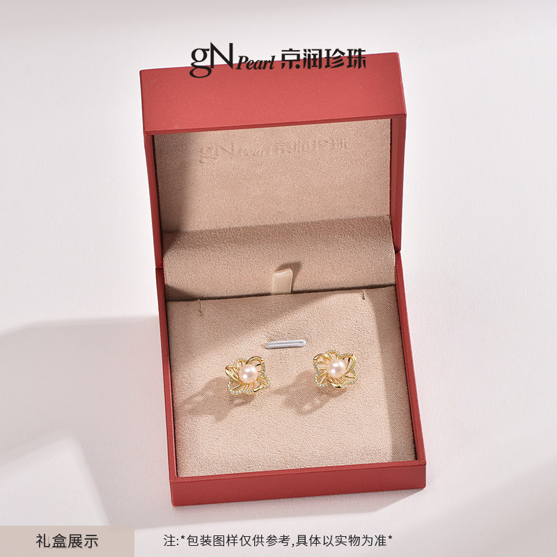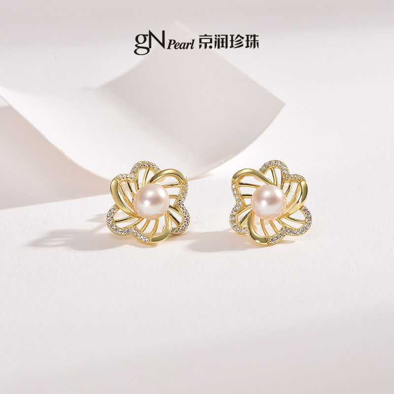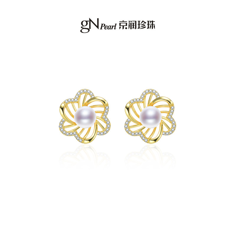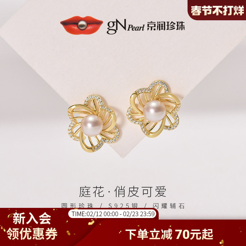 📚 京润珍珠庭花银S925淡水珍珠耳钉6-7mm圆形白色百搭款珍珠耳饰女D