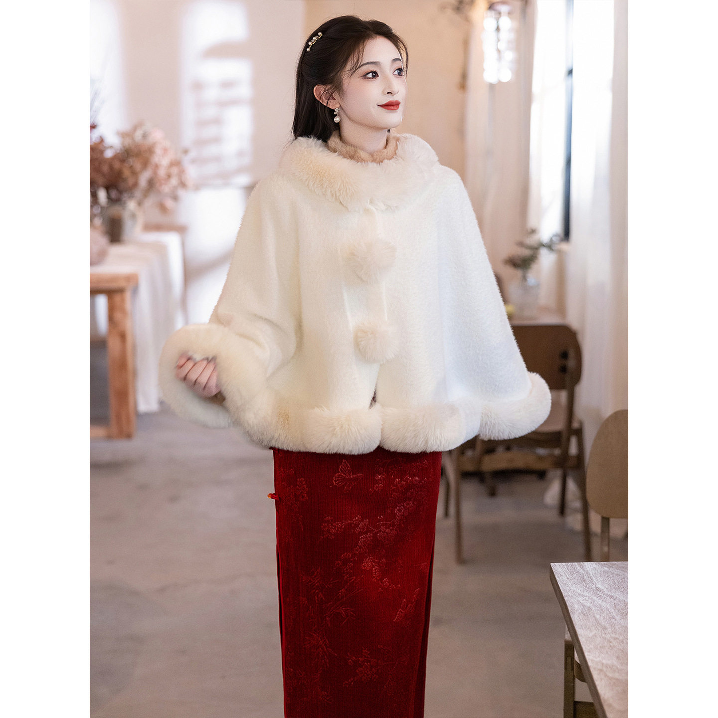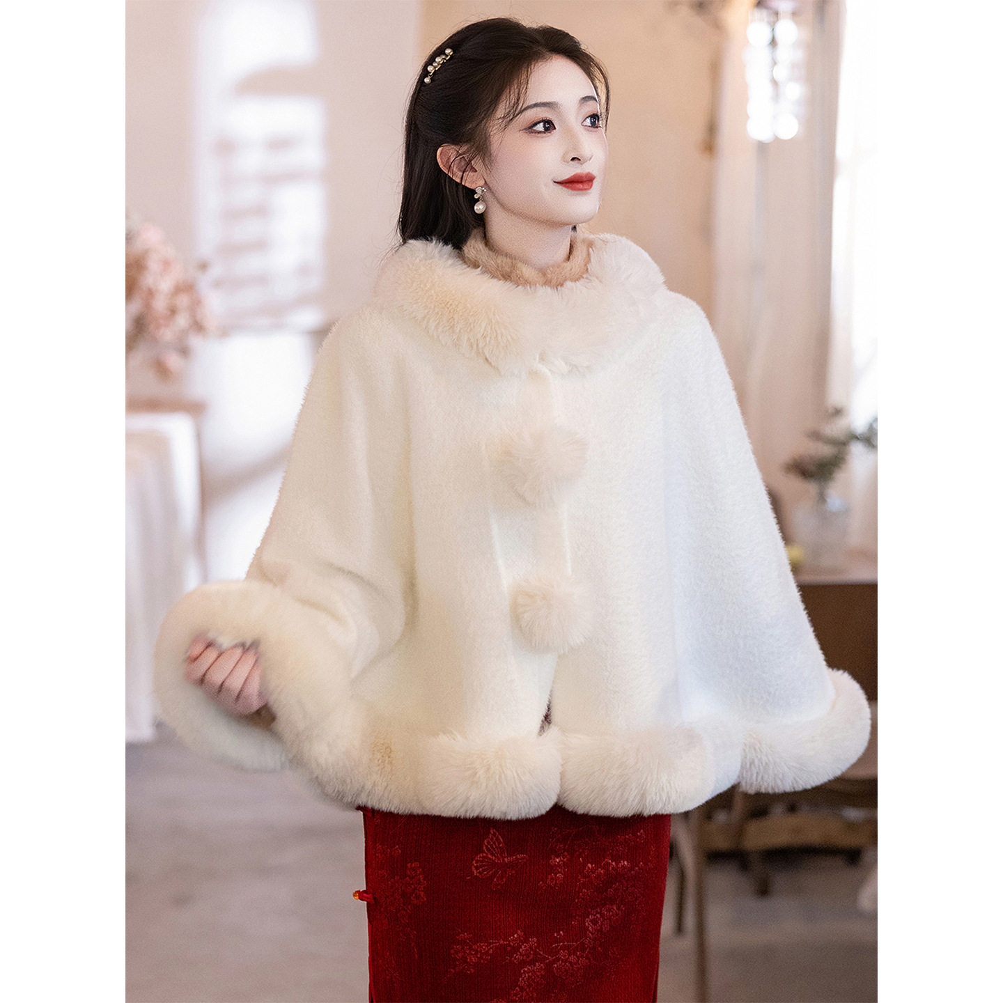 📚 软软糯糯的毛绒披肩搭配旗袍外搭冬季加厚保暖敬酒服新娘婚纱披风