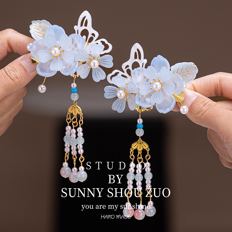 📚 女童汉服发饰儿童古装公主流苏发夹中国风小女孩古风琉璃步摇头饰