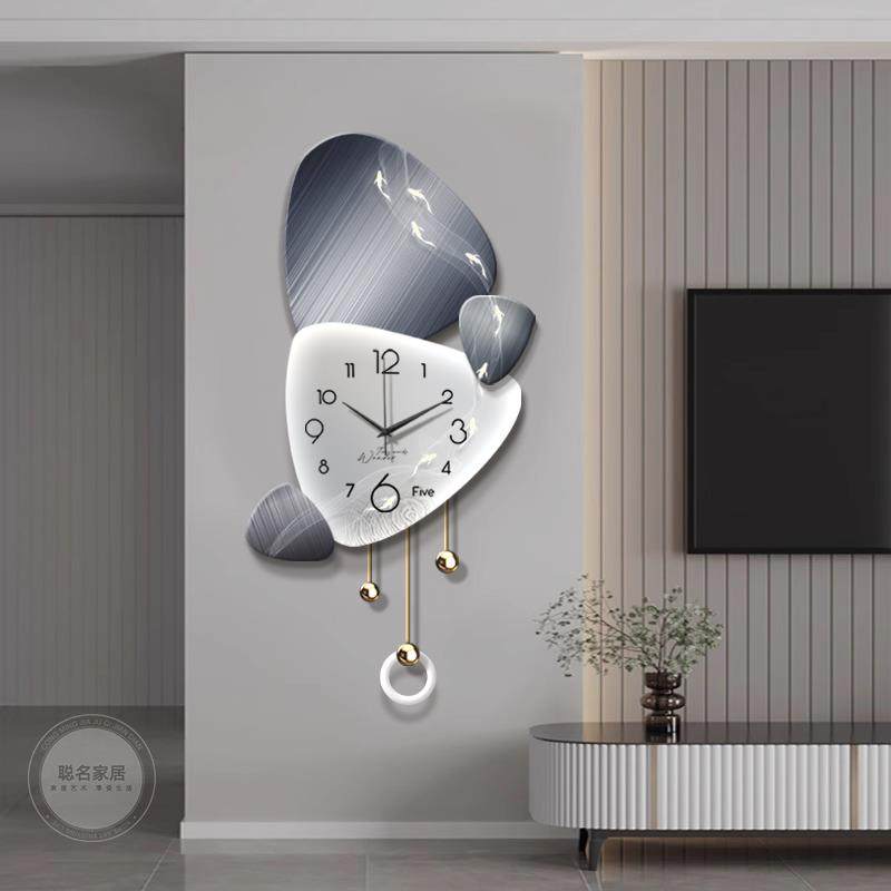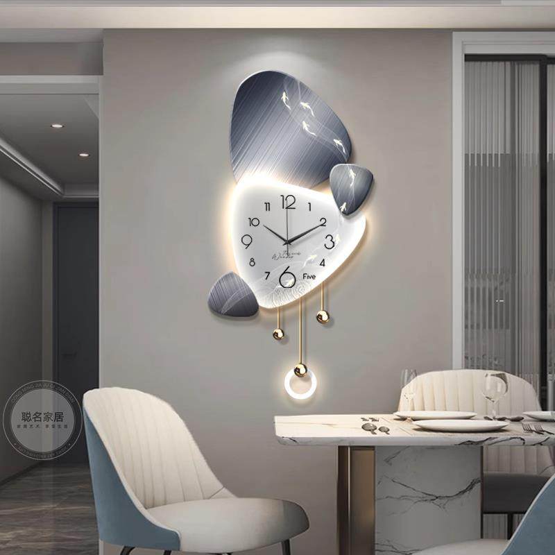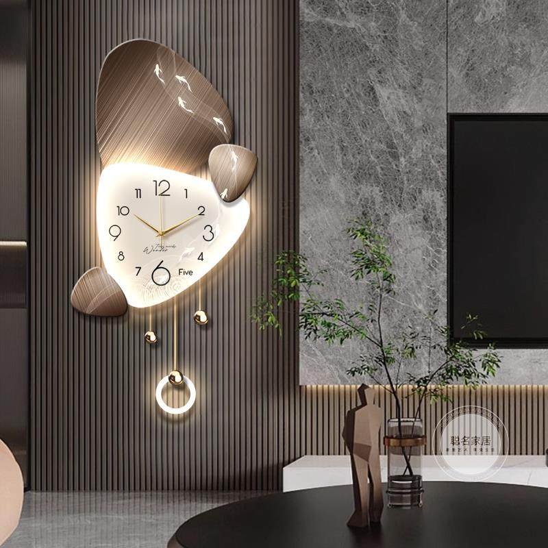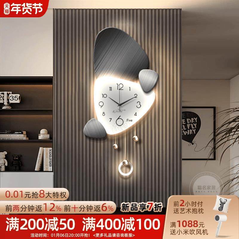 📚 时来运转挂钟轻奢客厅背景墙装饰画高级感静音钟表立体创意格栅灯