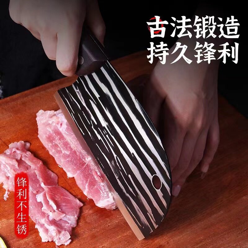 📚 家用菜刀龙泉手工锻打斩切两用刀圆头厨房锋利杀鱼刀砍骨头刀具