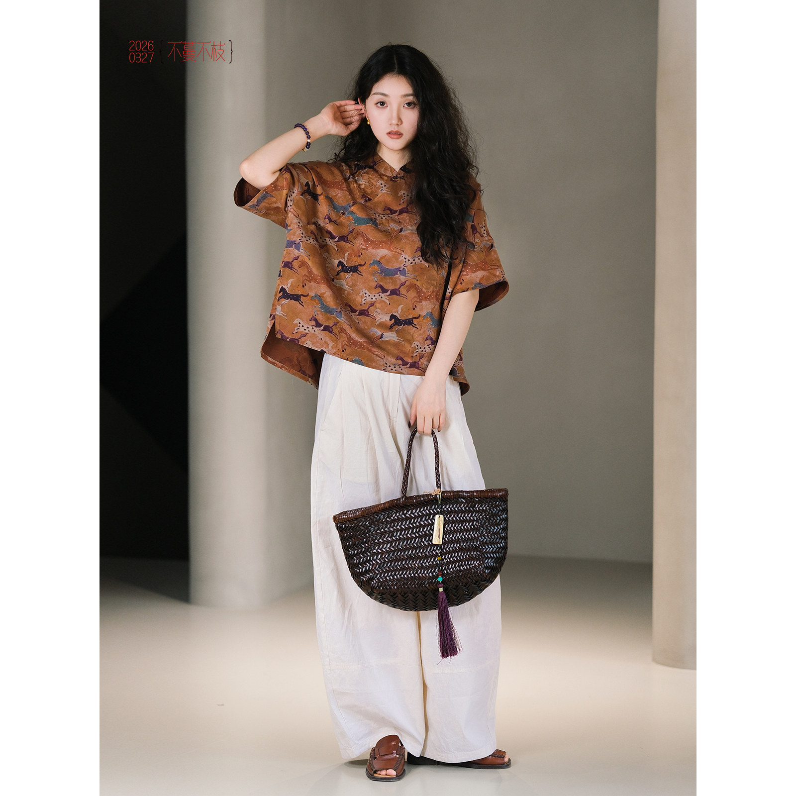 📚 不蔓不枝【静染】香云纱新中式上衣真丝小衫短袖立领印花夏季多色