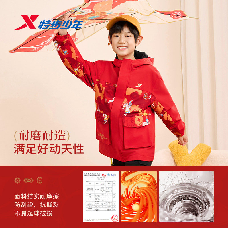 📚 福燈贺岁|特步童装儿童加绒冬季外套男童新年红色拜年服风衣冬装