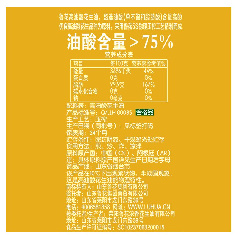 📚 鲁花高油酸花生油750ml*2精装礼盒 物理压榨健康食用油粮油礼盒装