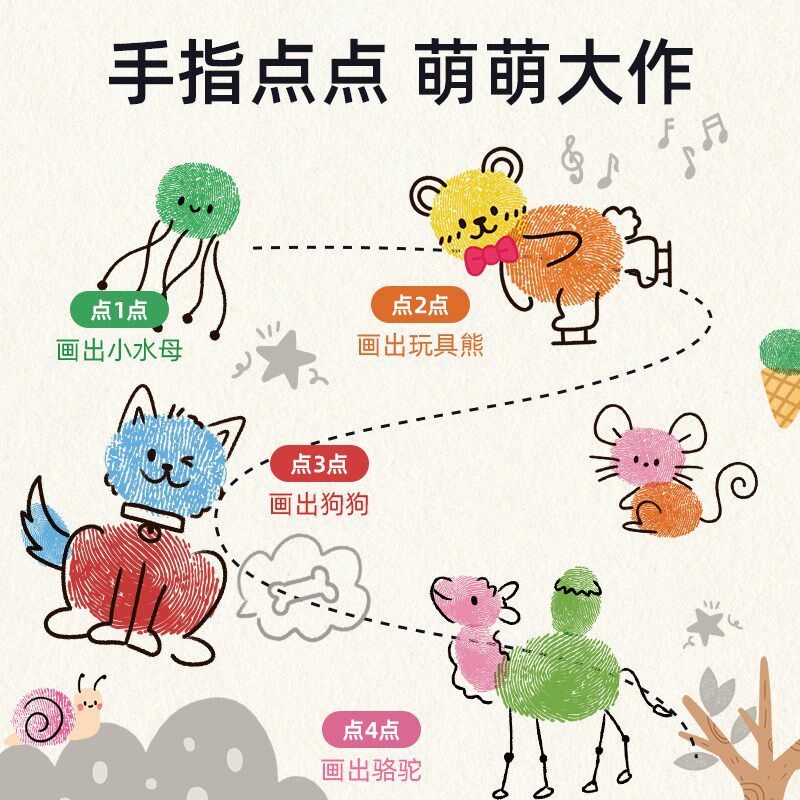 📚 儿童手指画画本涂鸦创意宝宝指印点画颜料3岁幼儿园便携印泥套装