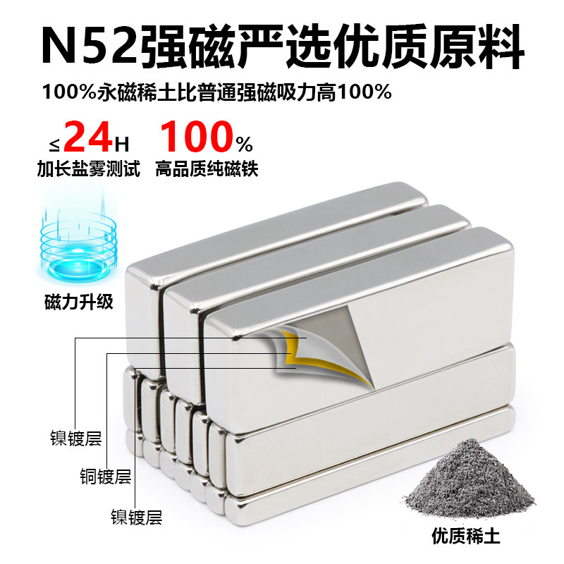 📚 N52高性能方形强磁超强磁铁钕铁硼磁钢吸铁石长条形永磁强力磁铁