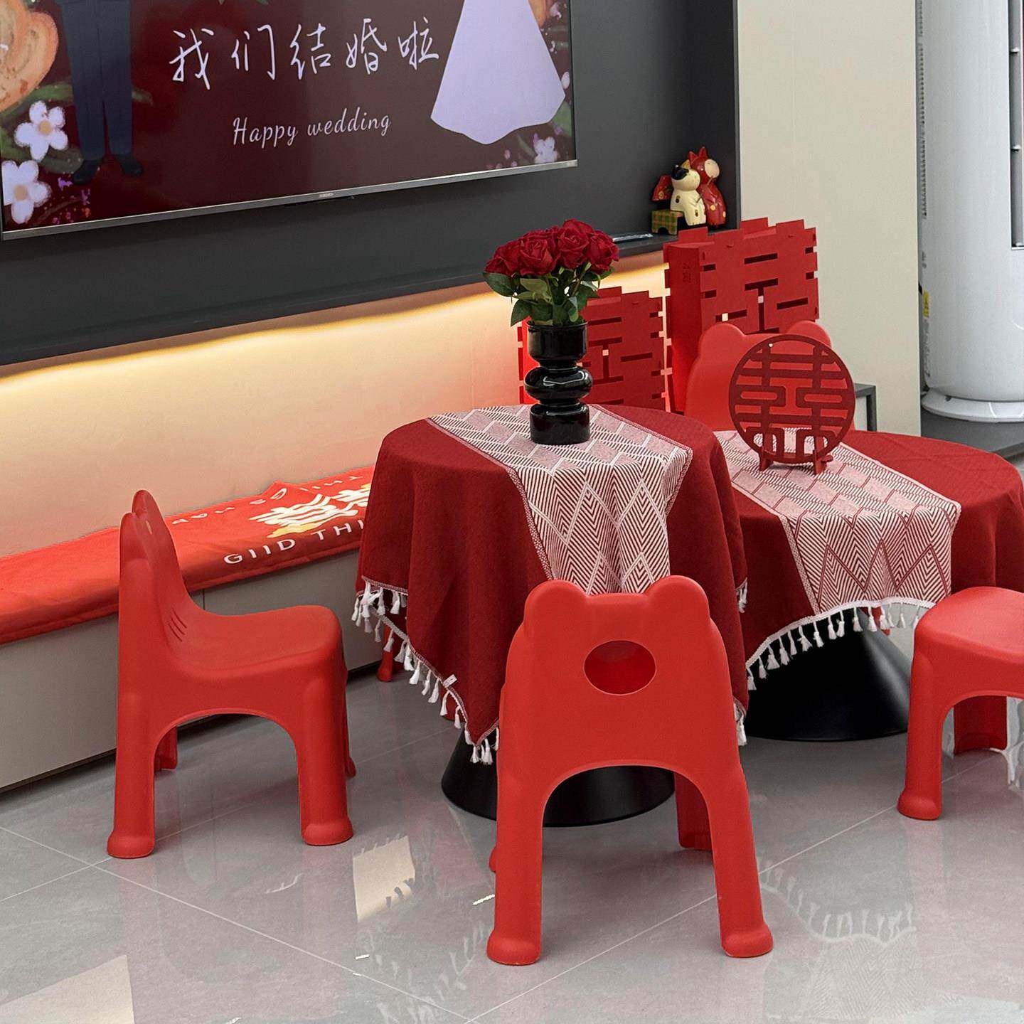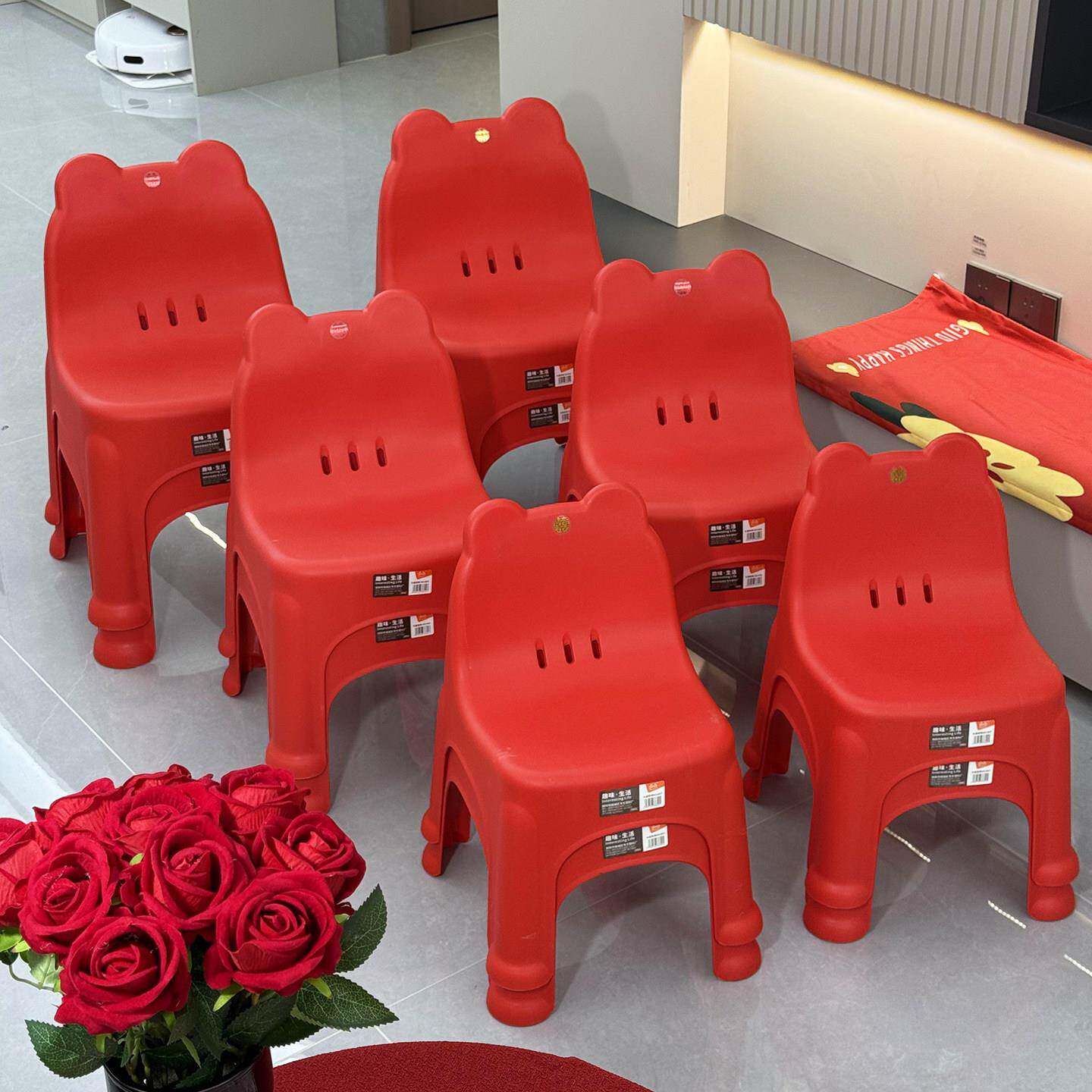 📚 喜事结婚椅子福气乔迁凳子矮凳靠背客厅来客请茶几摆宴矮椅塑料