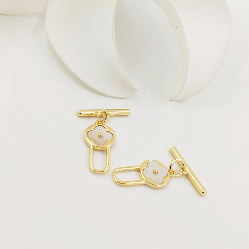 📚 项链贝母锁块四叶草项链扣18K包金ot扣保色diy饰品配件珍珠手链扣