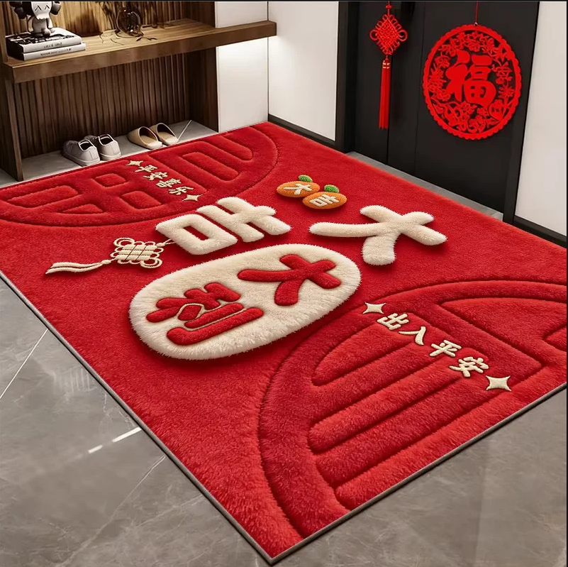 📚 红色入户门地垫新年喜庆防滑耐脏易打理玄关门口地毯家用进门脚垫