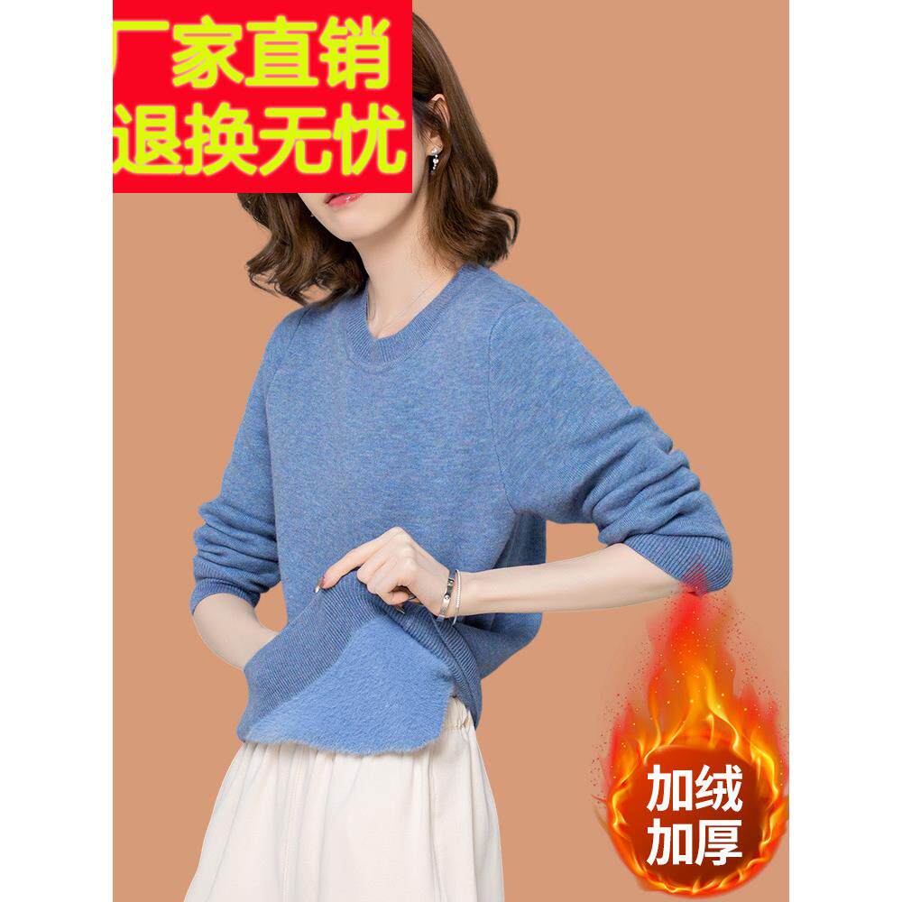 📚 小个子加绒毛衣女加厚冬季一体绒短款套头保暖低领打底内搭羊毛衫