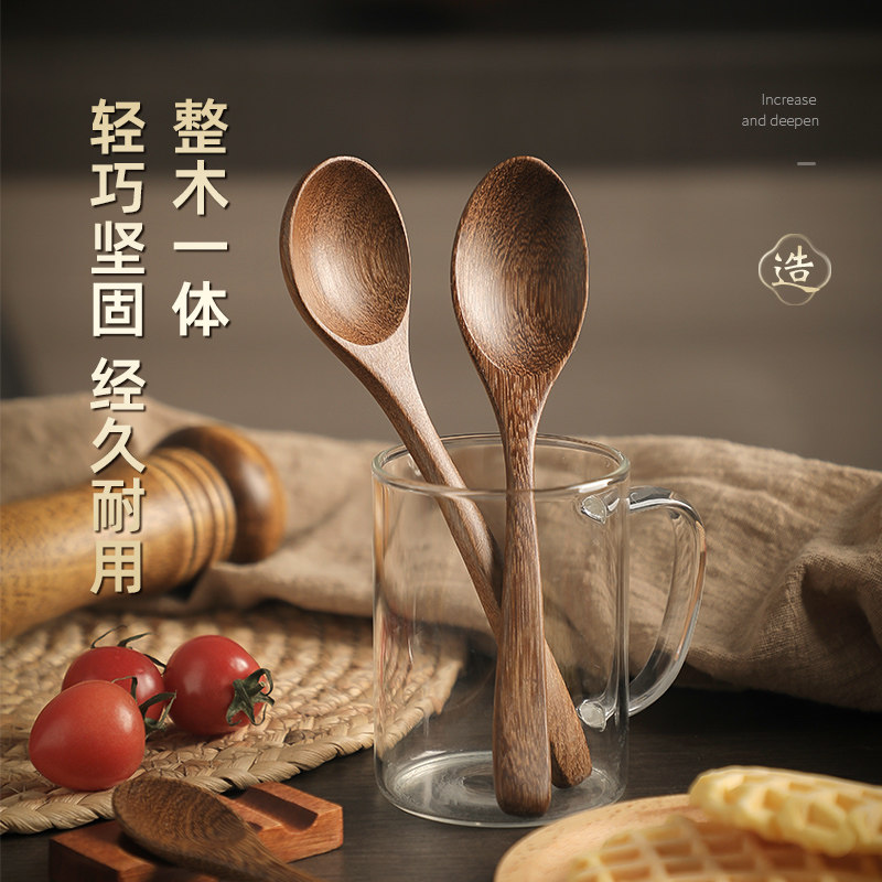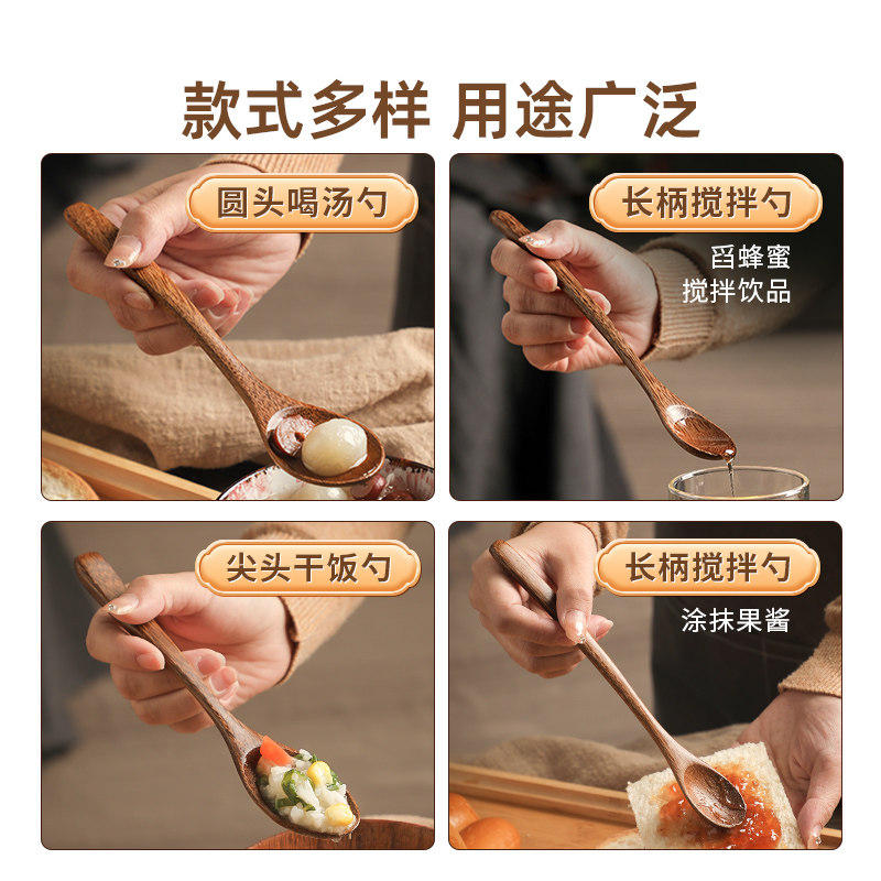 📚 鸡翅木长柄木勺子吃饭用汤匙搅拌勺喝汤调羹勺家用无漆木勺蜂蜜勺