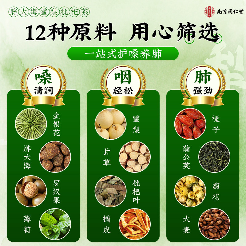 📚 南京同仁堂胖大海罗汉果雪梨茶咽炎润喉护清嗓炎化痰止咳养肺茶包