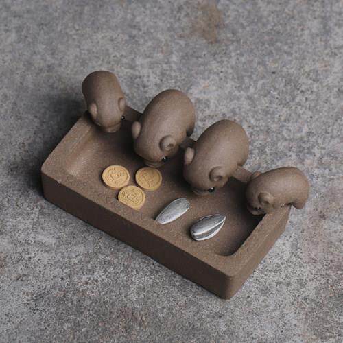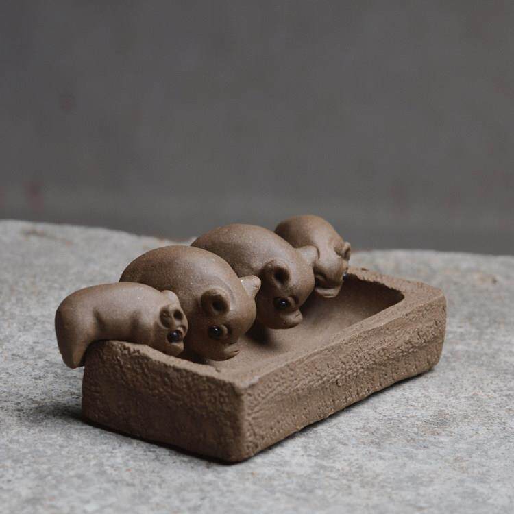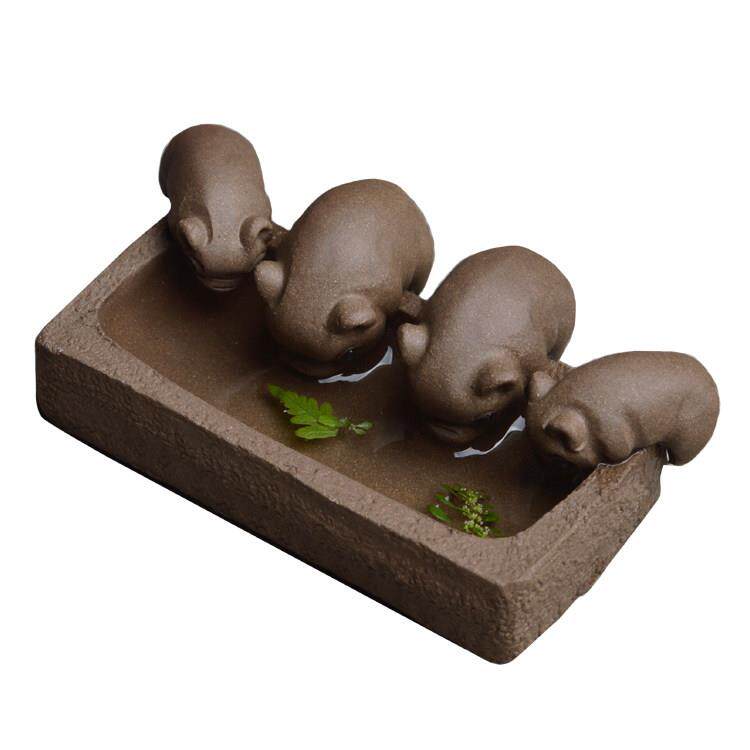 📚 沐合堂小猪喝水槽雕创意手工宜兴段泥四祇猪茶玩茶宠摆件丰衣足食