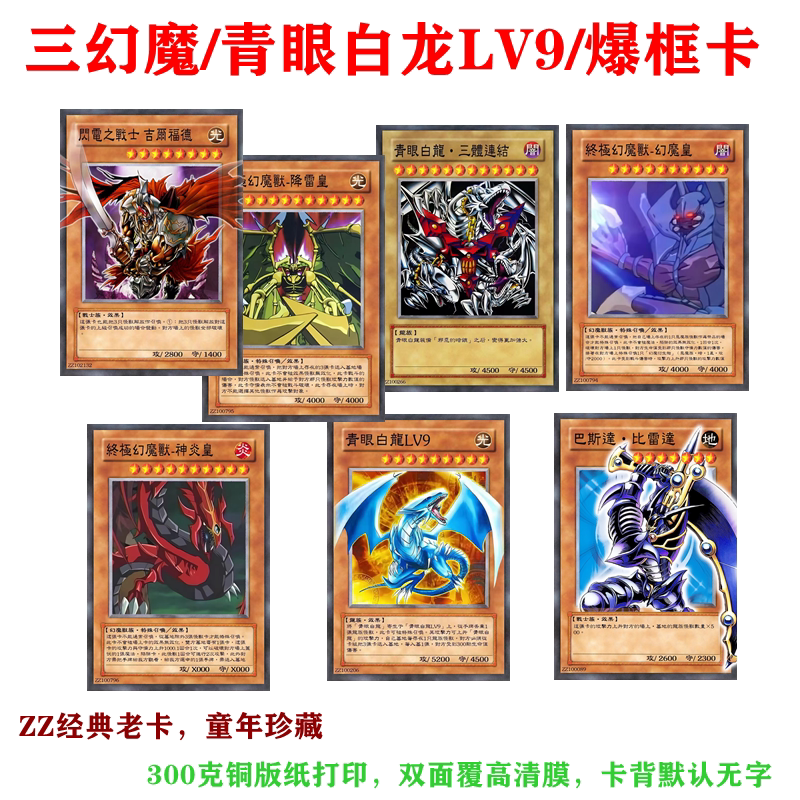 📚 游戏王卡片ZZ三幻魔青眼白龙LV9三幻神召唤之雏光龙爆框高清打印