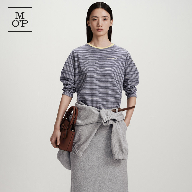 📚 Marc O'Polo/MOP26春季新款时髦设计感条纹撞色长袖T恤女圆领上衣