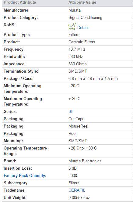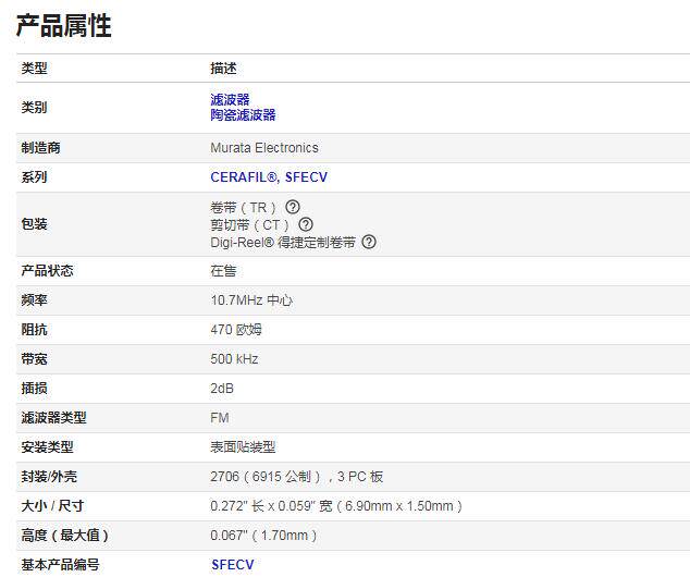 📚 SFECV10M7CQ0C01-R0 MURATA 10.7M 10.7MHZ 带宽500KHZ 声表滤波