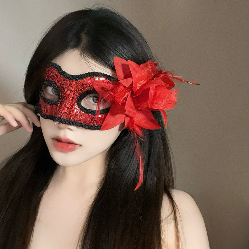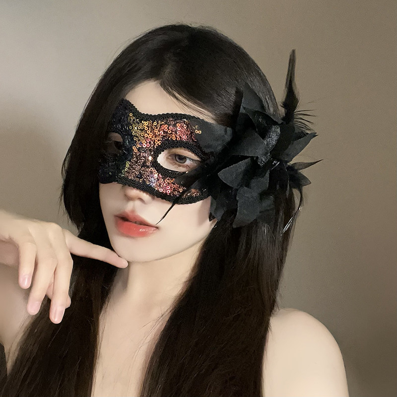 📚 万圣节成人羽毛花朵面具亮片半脸假面舞会派对公主表演出情调面罩