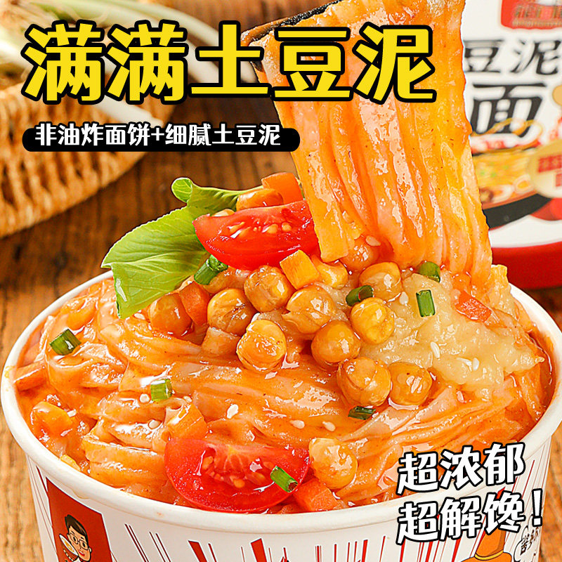 📚 花间巷土豆泥泥拌面番茄味方便面桶装泡面免煮速食品夜宵充饥零食