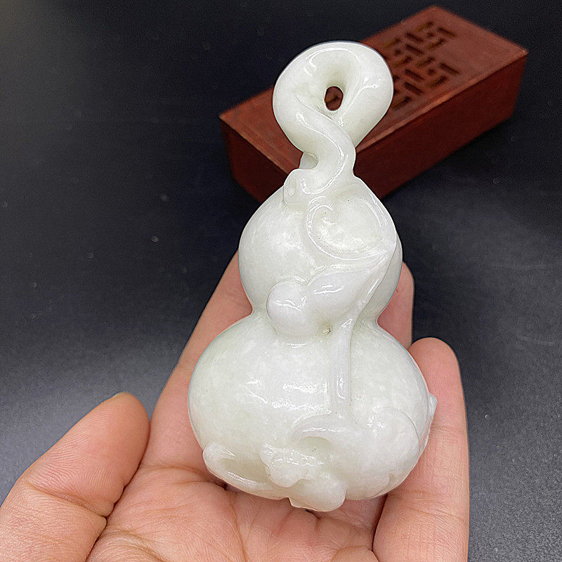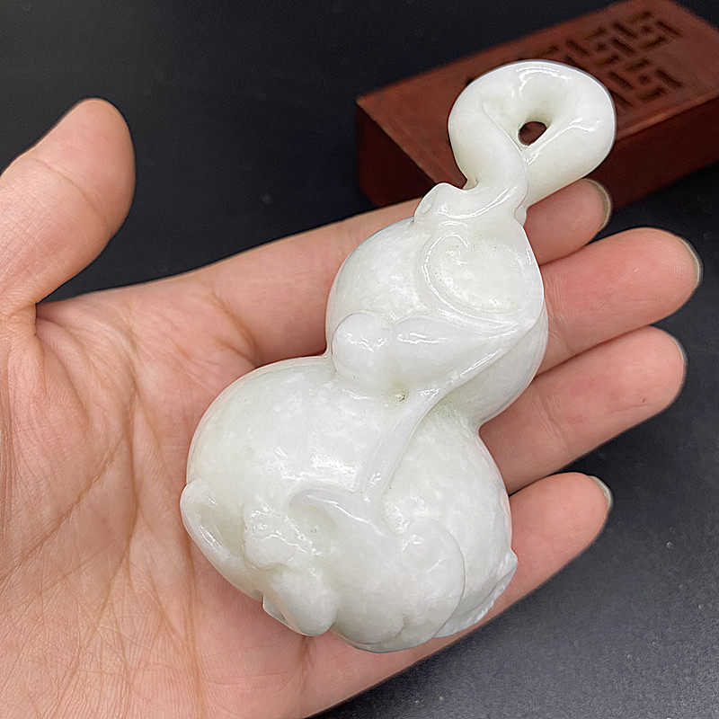 📚 天然蓝田玉葫芦手把件摆件把玩件玉福禄招财吉祥物客厅玄关装饰品
