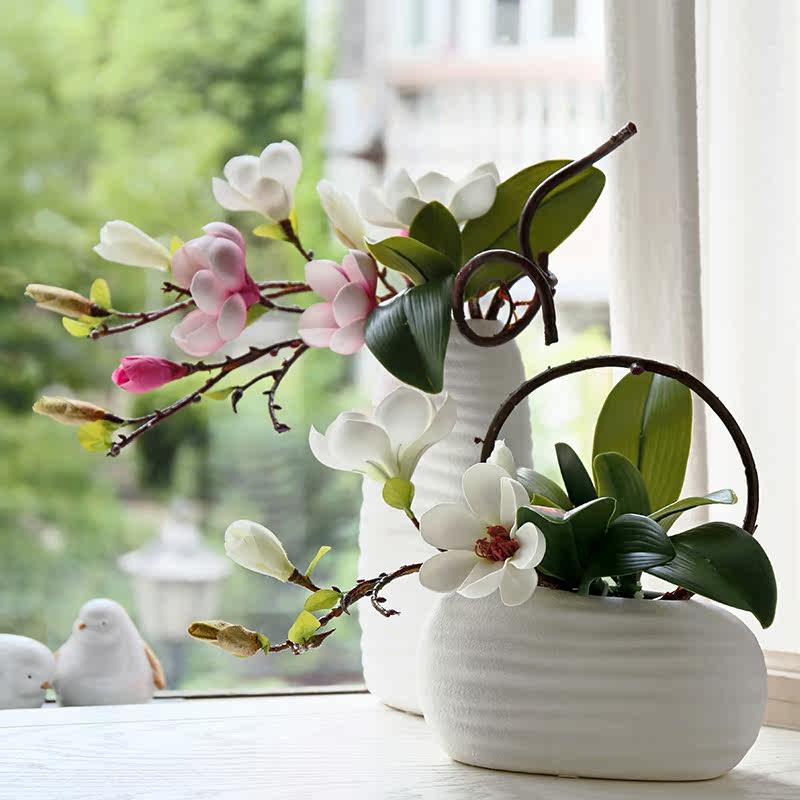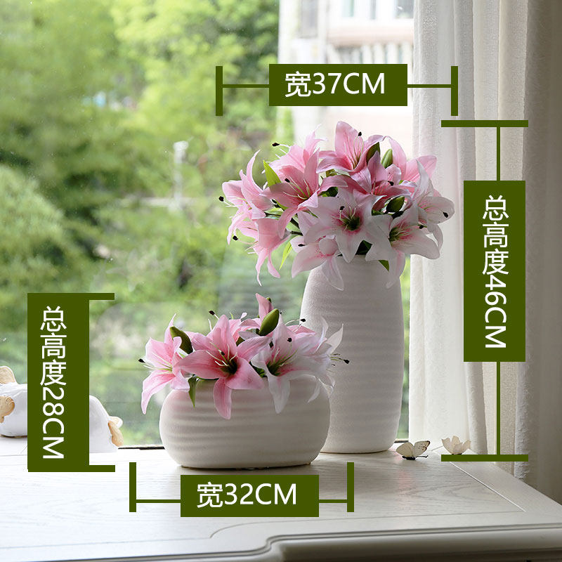 💥和家PU百合花玉兰花石斛兰绢花蝴蝶兰仿真花白色水纹陶瓷花瓶!种草记💖