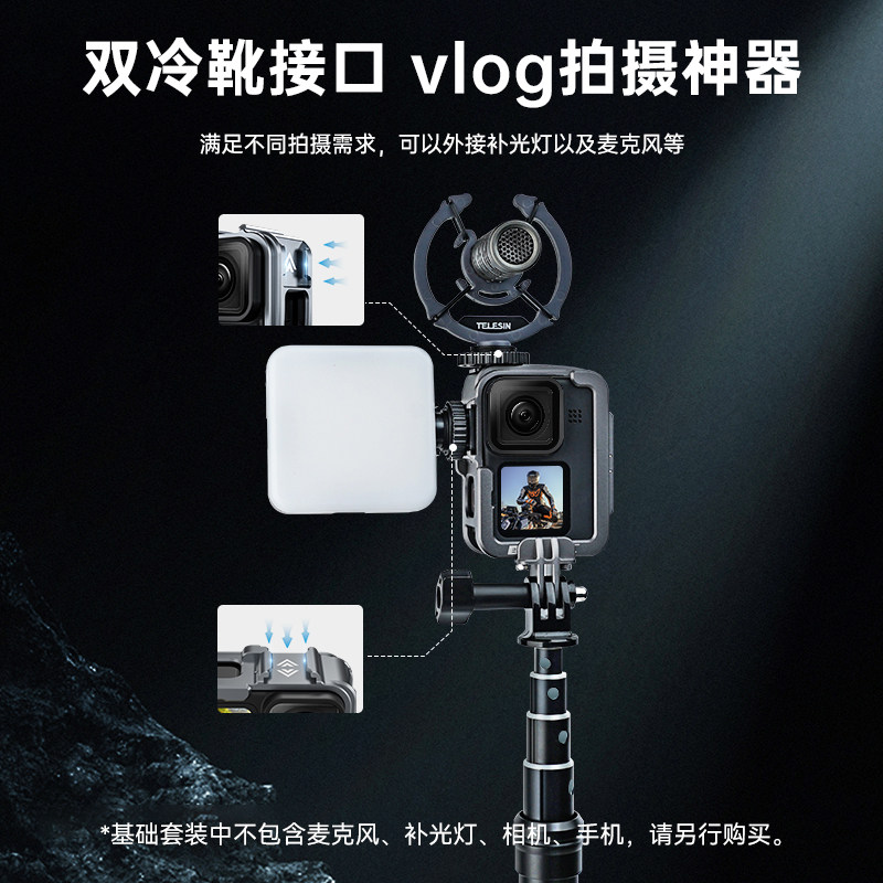 📚 泰迅适配GoPro13/12/11/10/9兔笼狗笼金属防摔边框保护框补光灯固定拓展接口视频自拍拍摄配件GoPro12配件