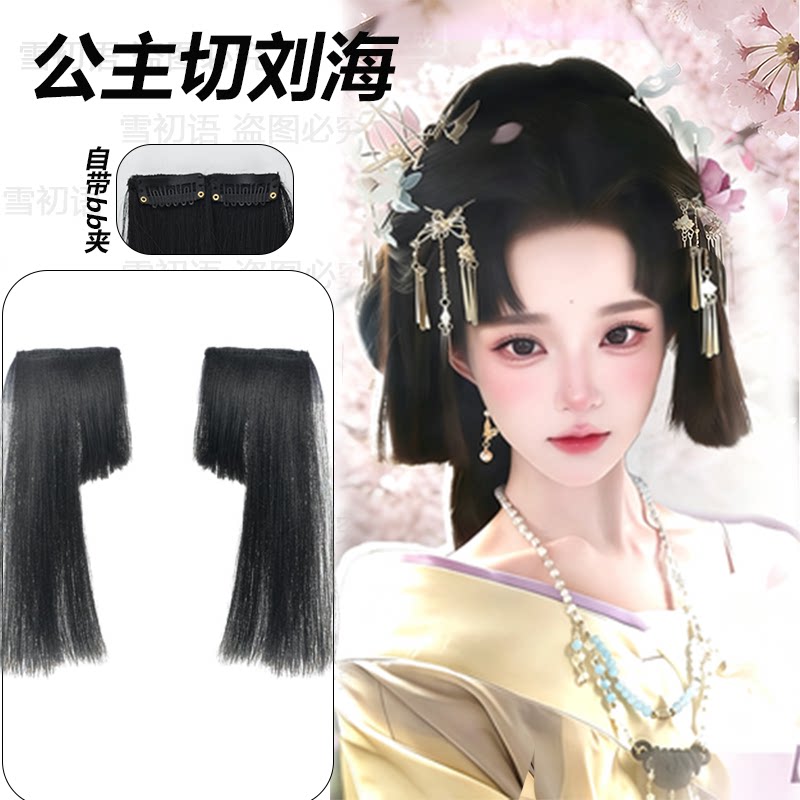 📚 古风假发一体连体公主切假发片古装两侧鬓角姬发式二次元分心刘海