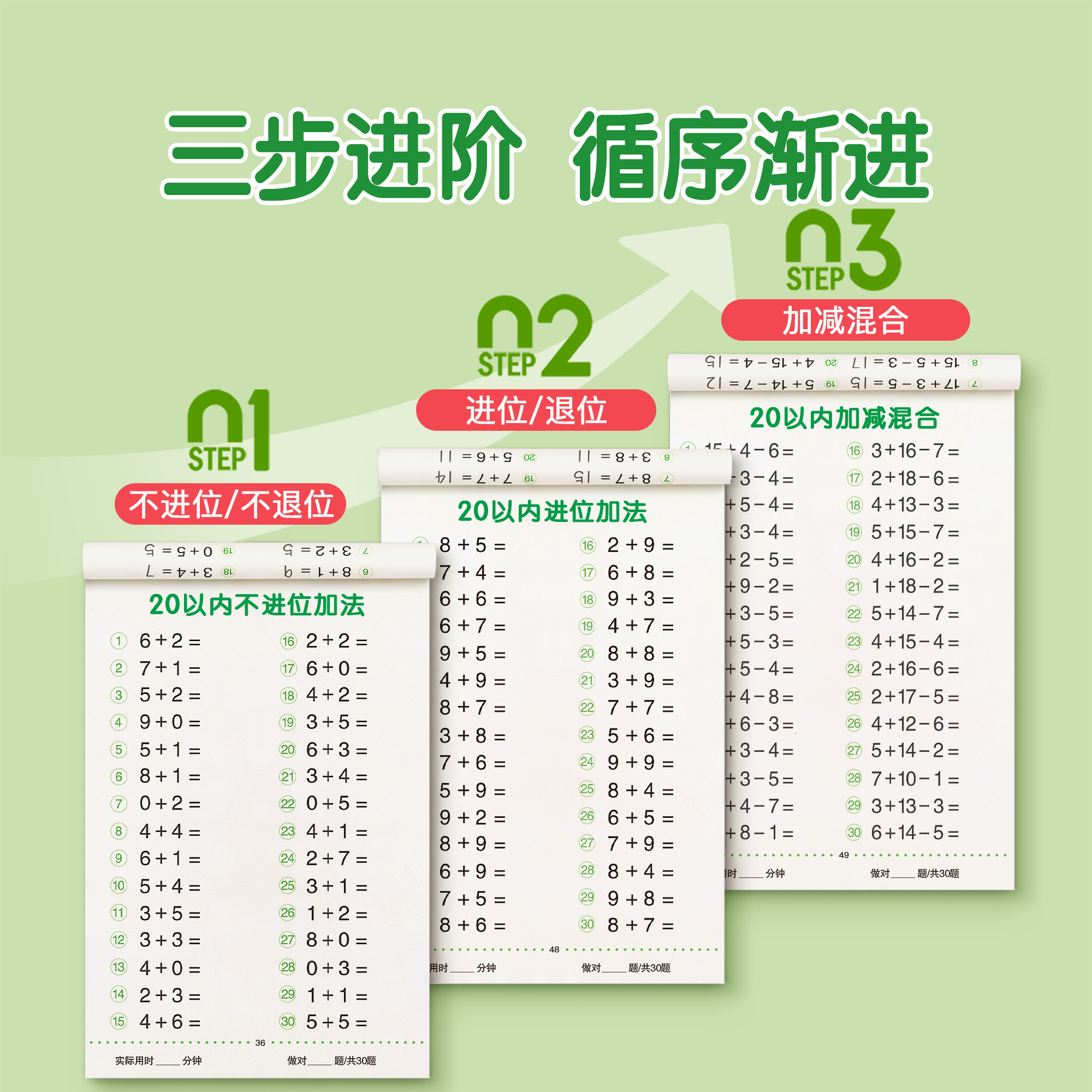 📚 20以内加减法天天练幼小衔接每日一练大班数学思维训练一年级口算天天练10 30 50 100以内加减法练习册幼儿园教材全套口算题卡