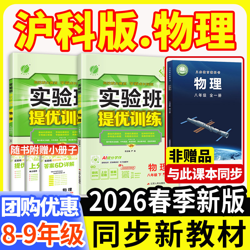 📚 2026春新版实验班提优训练八年级下册沪科版物理九年级上册HK初二初三上89新教材同步练习册拔尖特训必初中刷题安徽福建山东专用