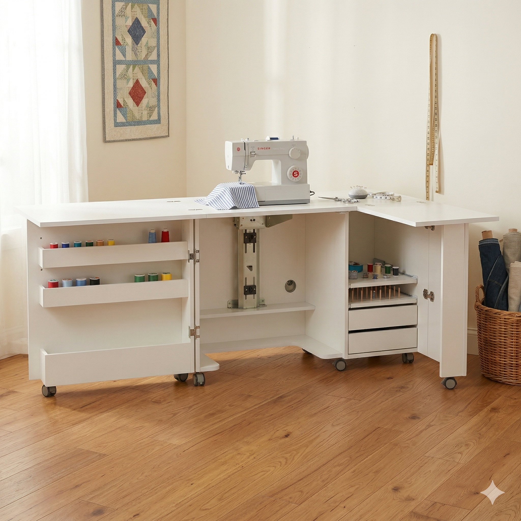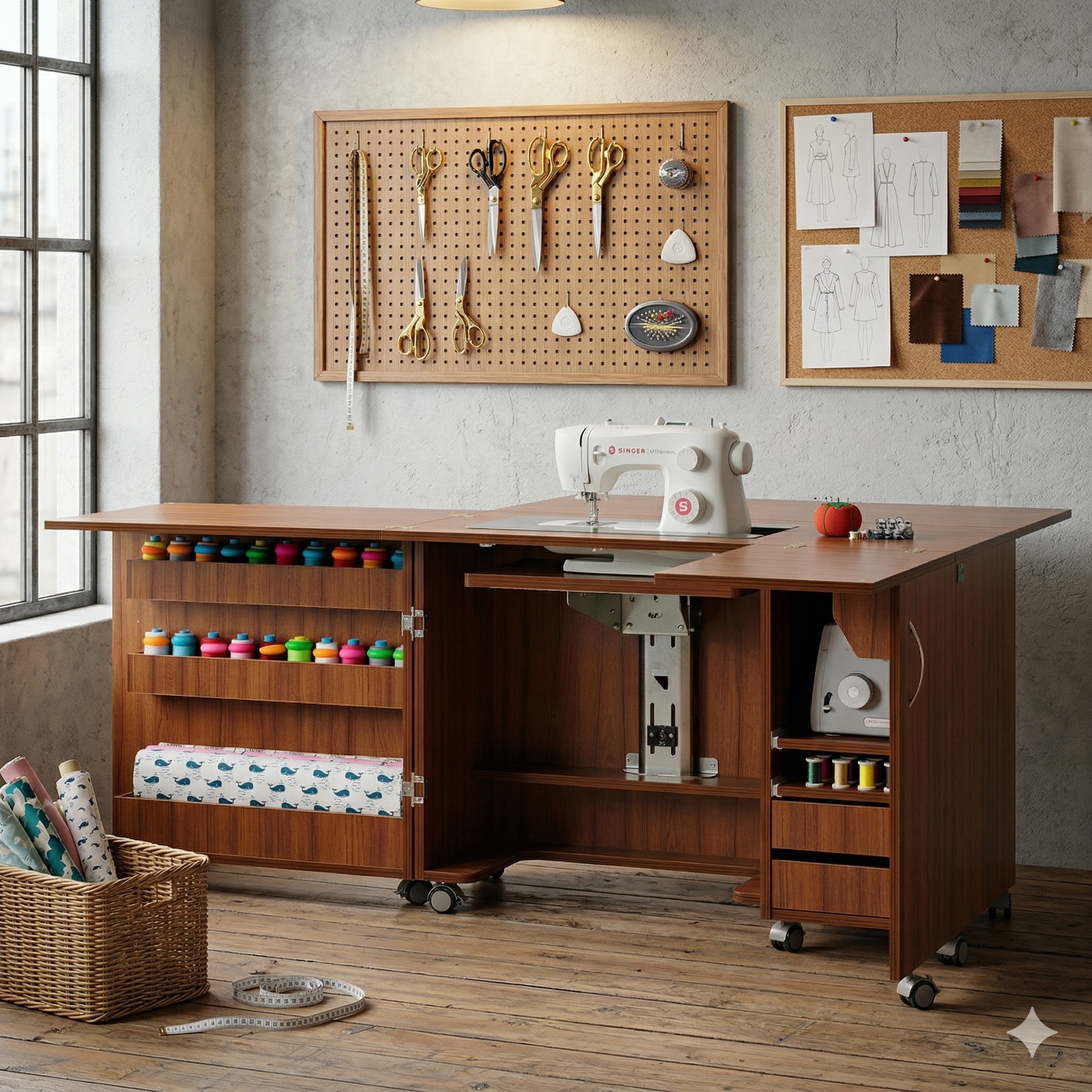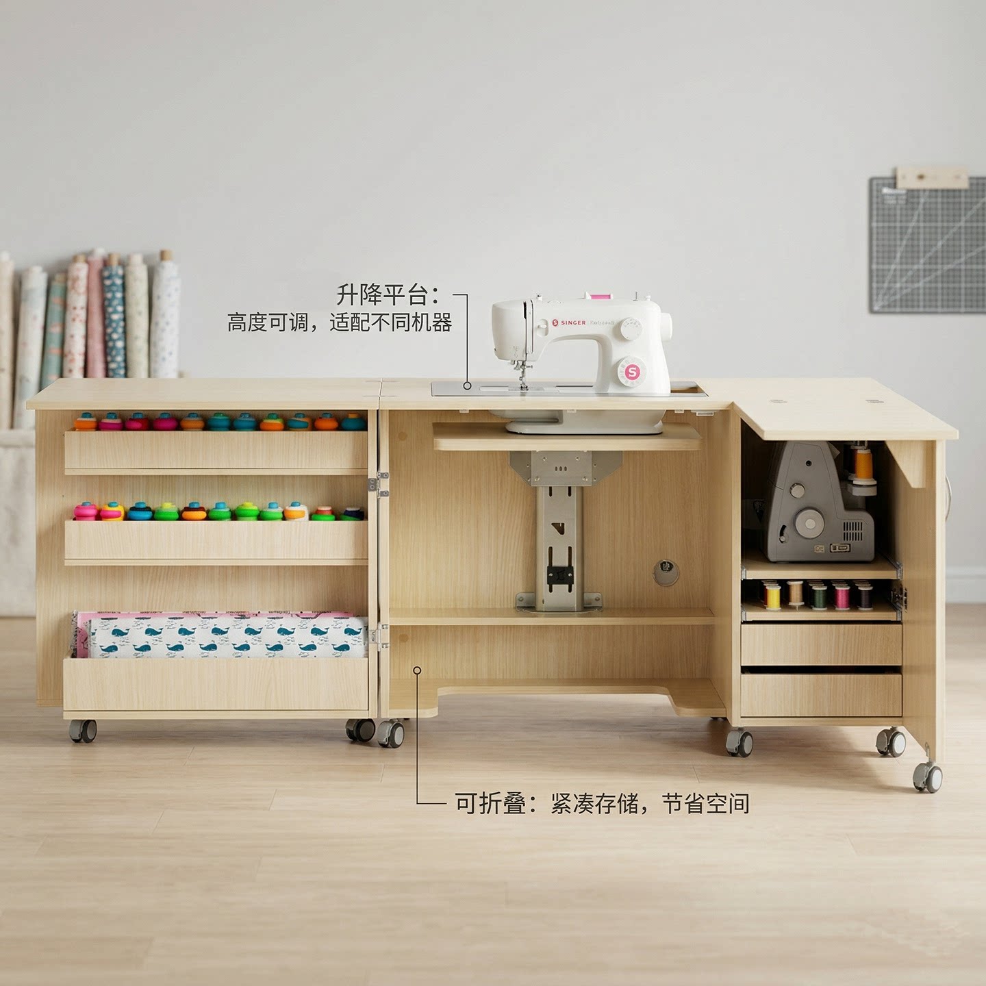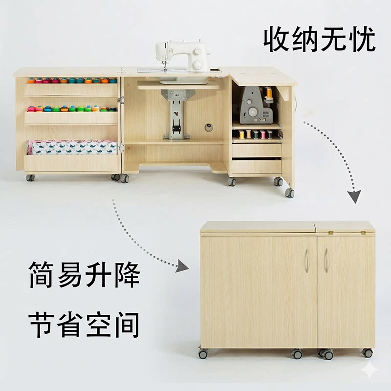 📚 家用缝纫机桌缝纫台收纳桌胜家兄弟重机蝴蝶真善美工作台布艺台