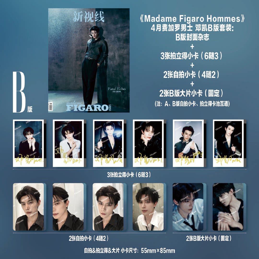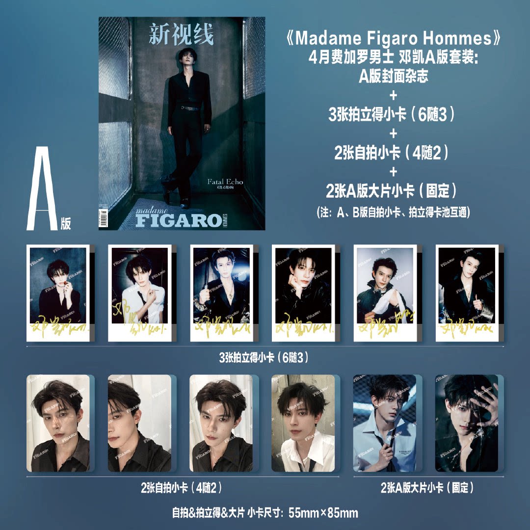 📚 计入销量 费加罗男士 4月 邓凯C版套装:A+B封面杂志+AB卡池所有小卡+隐藏自拍卡+拍立得 Madame Figaro Hommes新视线4月刊 精品