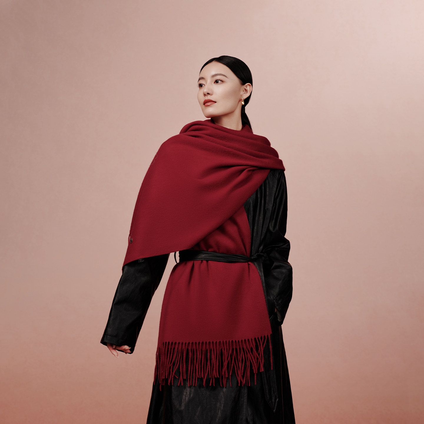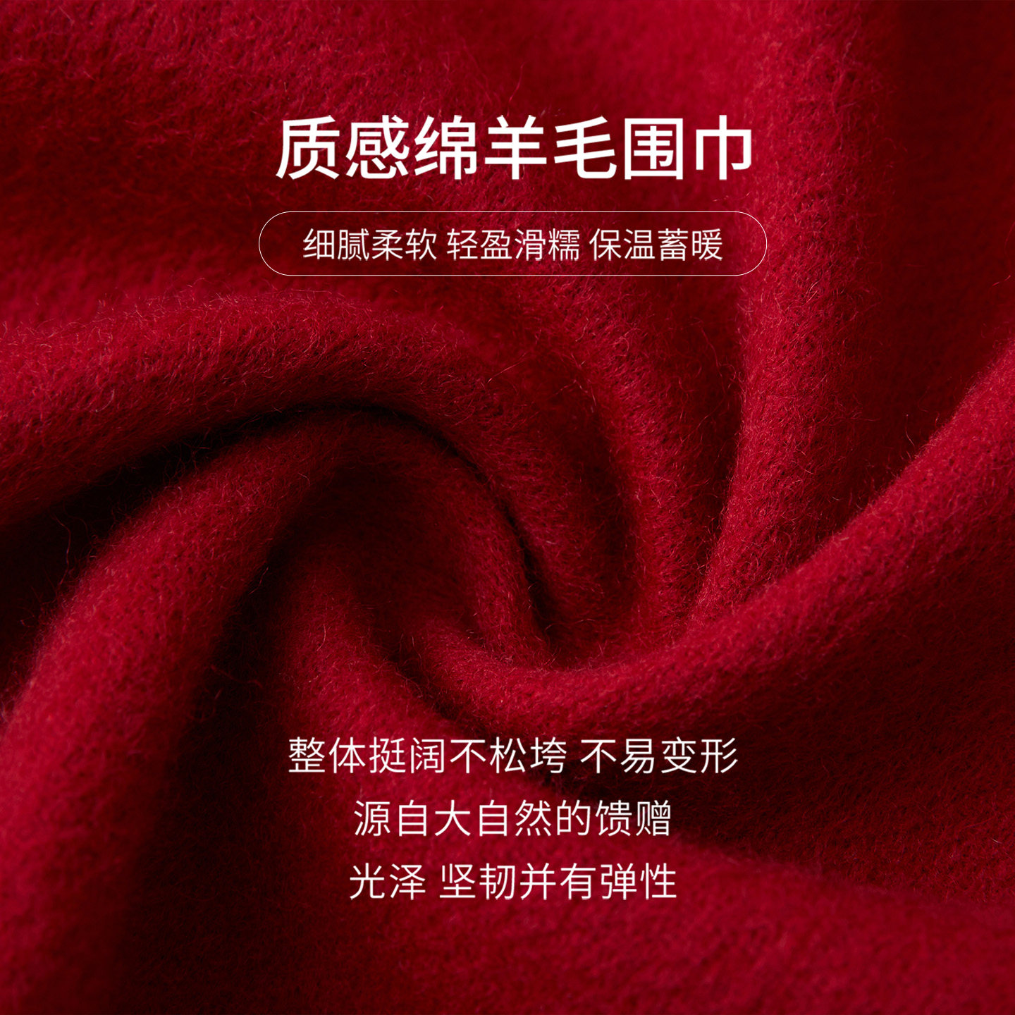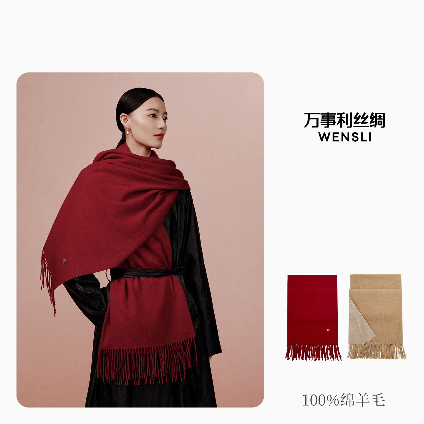📚 万事利秋冬新品纯色羊毛披肩女红色本命年礼物保暖流苏围巾一首诗