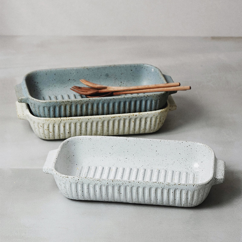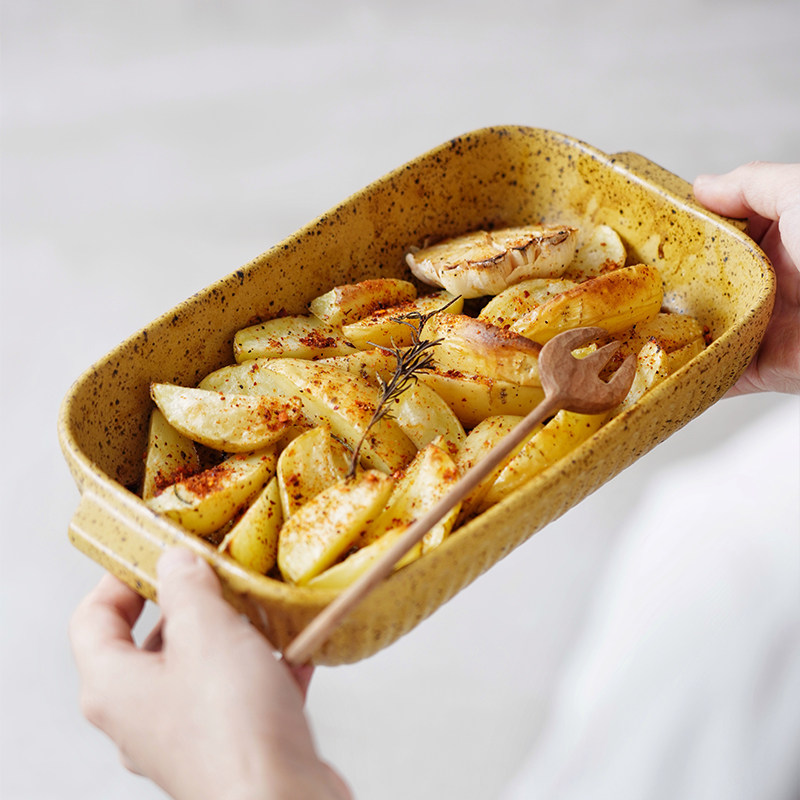 📚 双耳烤盘手绘复古厨房烘焙盘子陶土日式餐厅寿司点心盘家用菜盘子