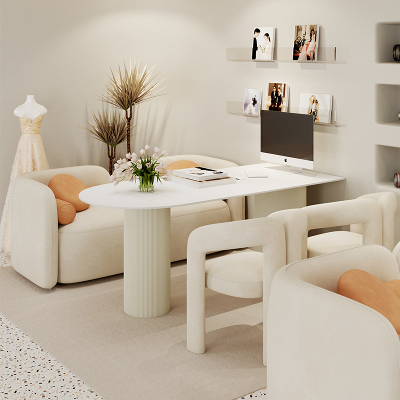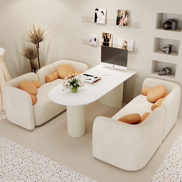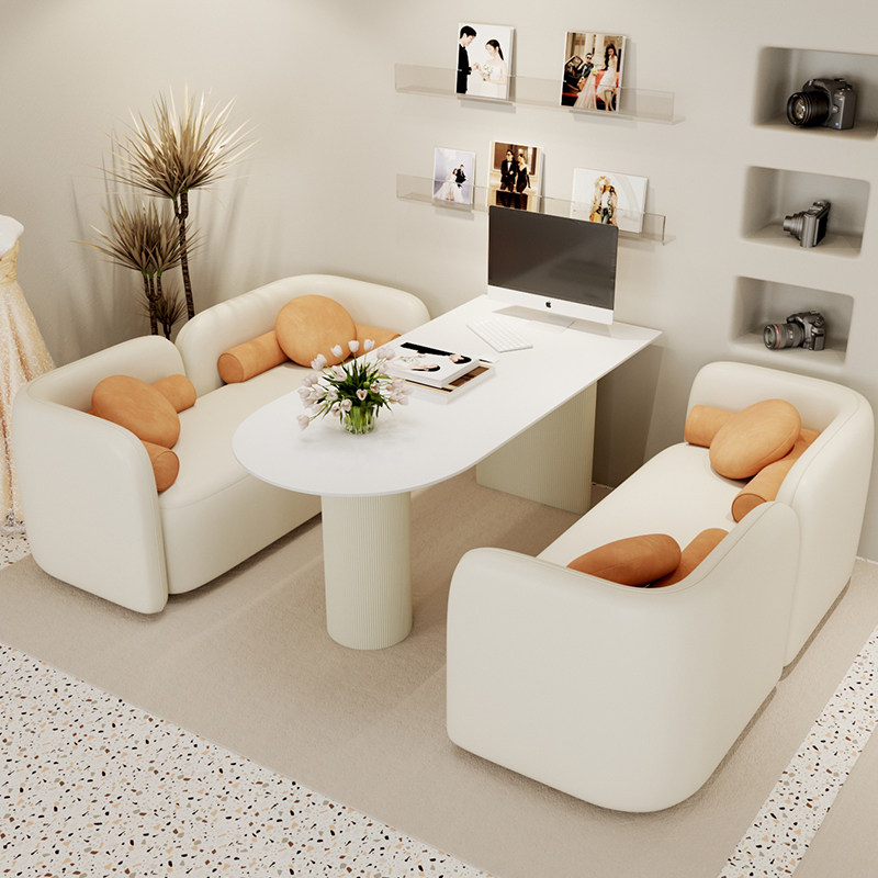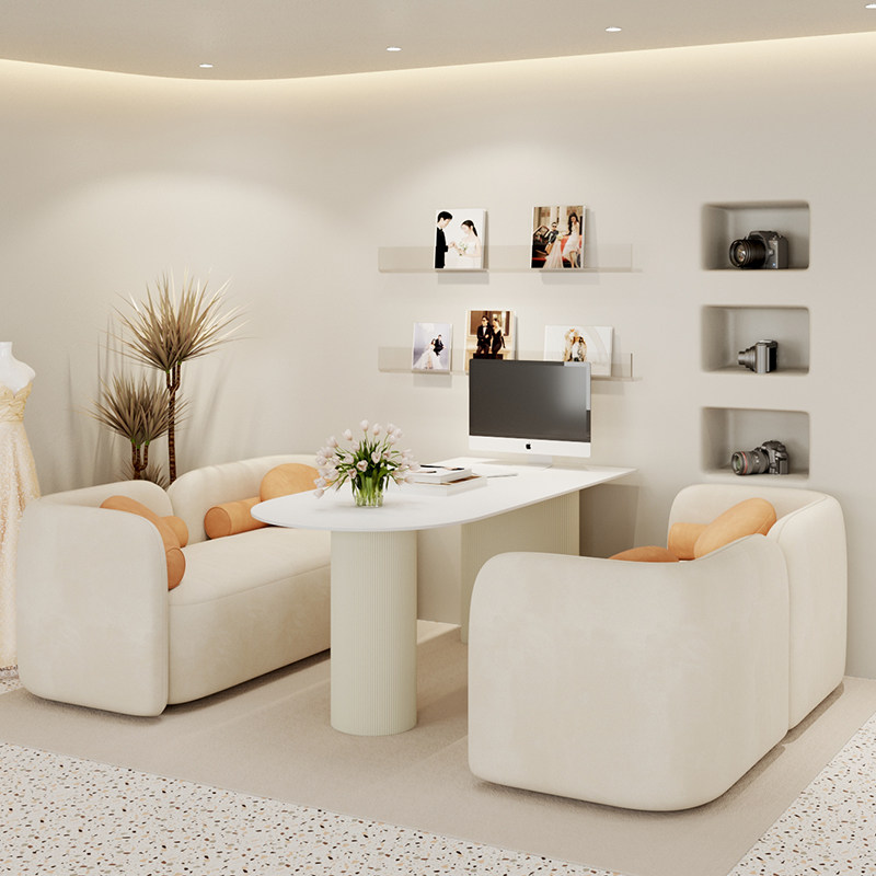 📚 奶油风影楼选片区桌椅组合婚纱店洽谈沙发休闲网红美容院接待卡座
