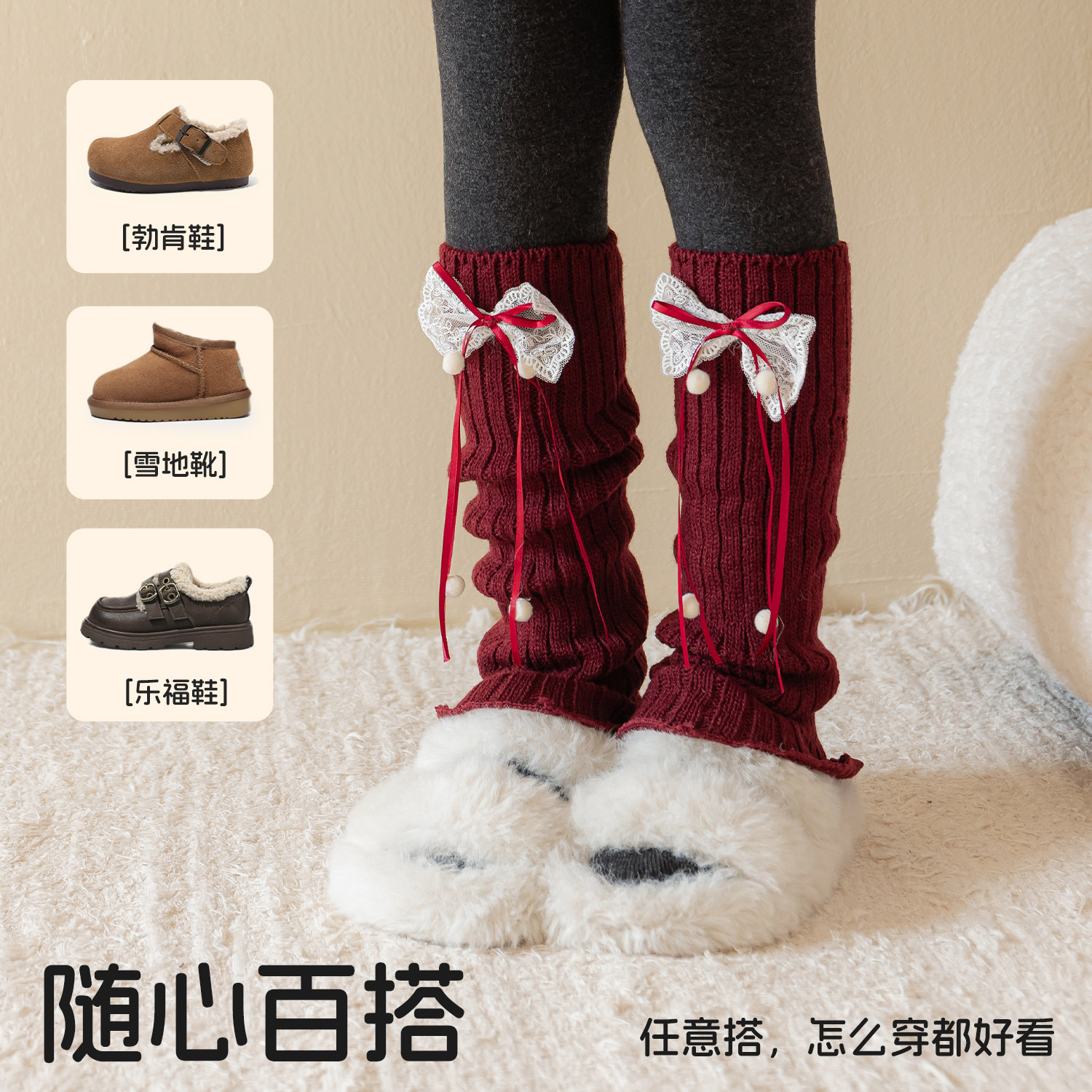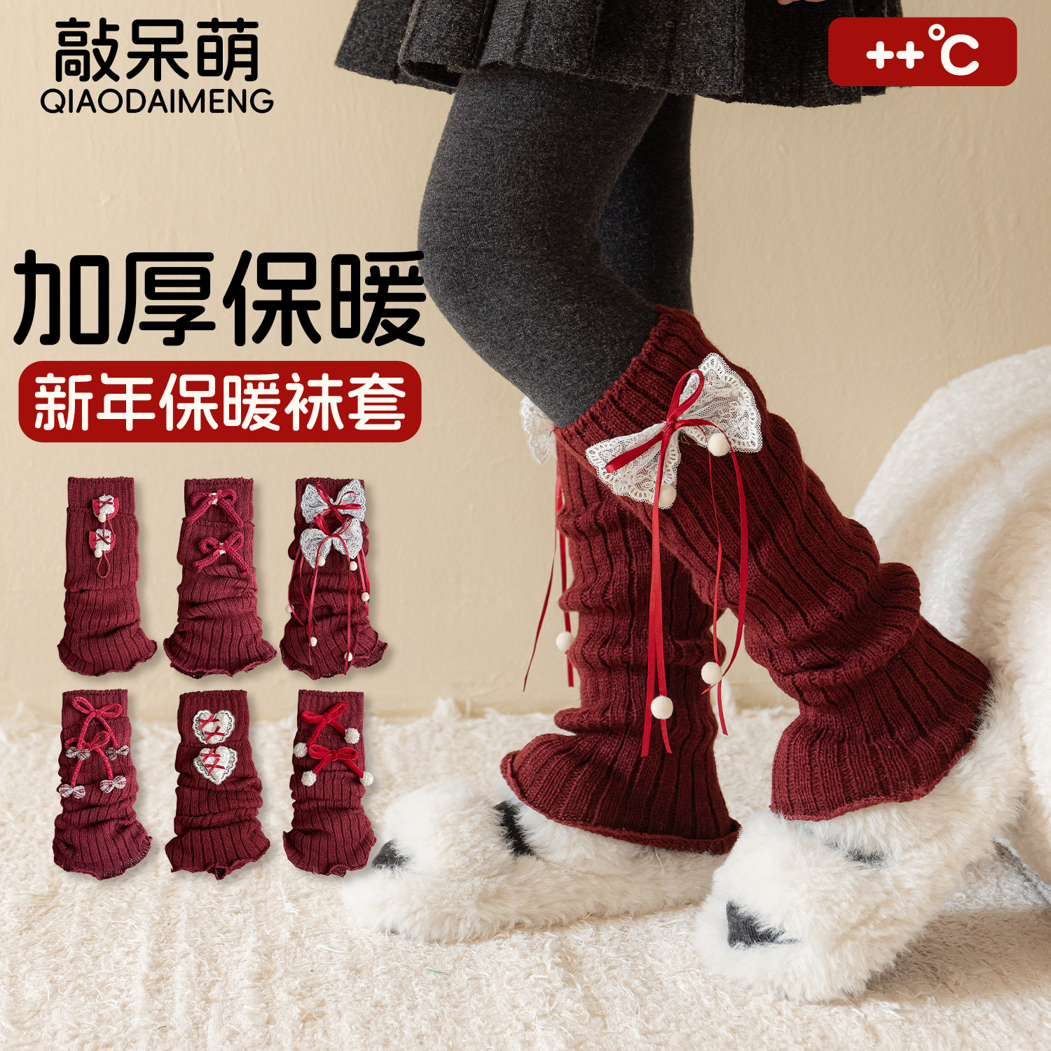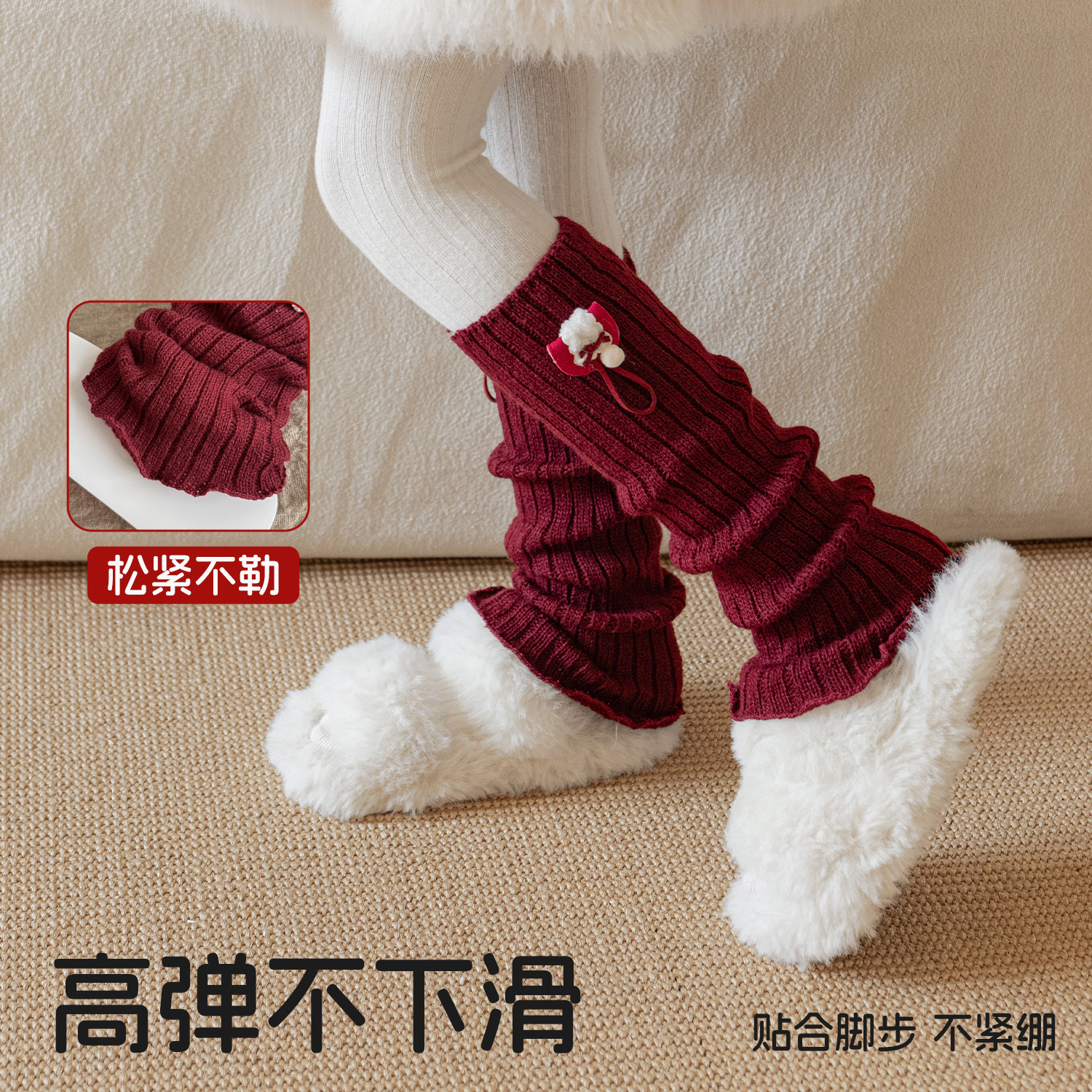 📚 红色袜套女童堆堆袜儿童冬加厚保暖袜筒女孩宝宝新年长筒护腿袜套