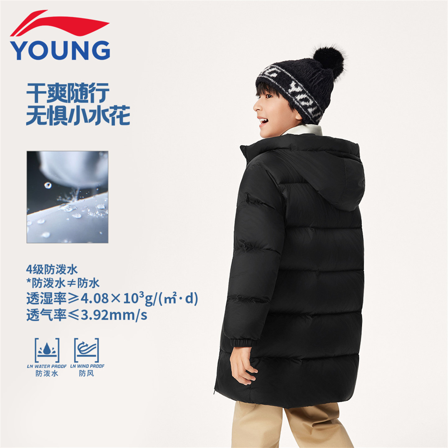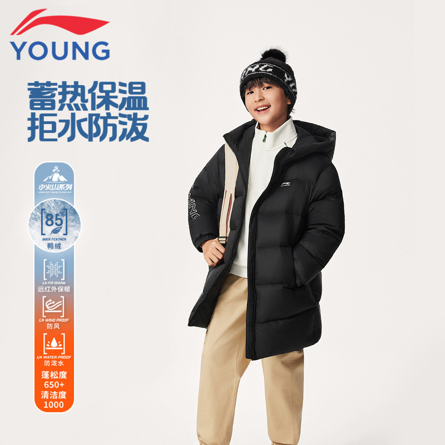 📚 李宁儿童羽绒服中长款男童2025冬季新款轻便连帽保暖鸭绒加厚外套
